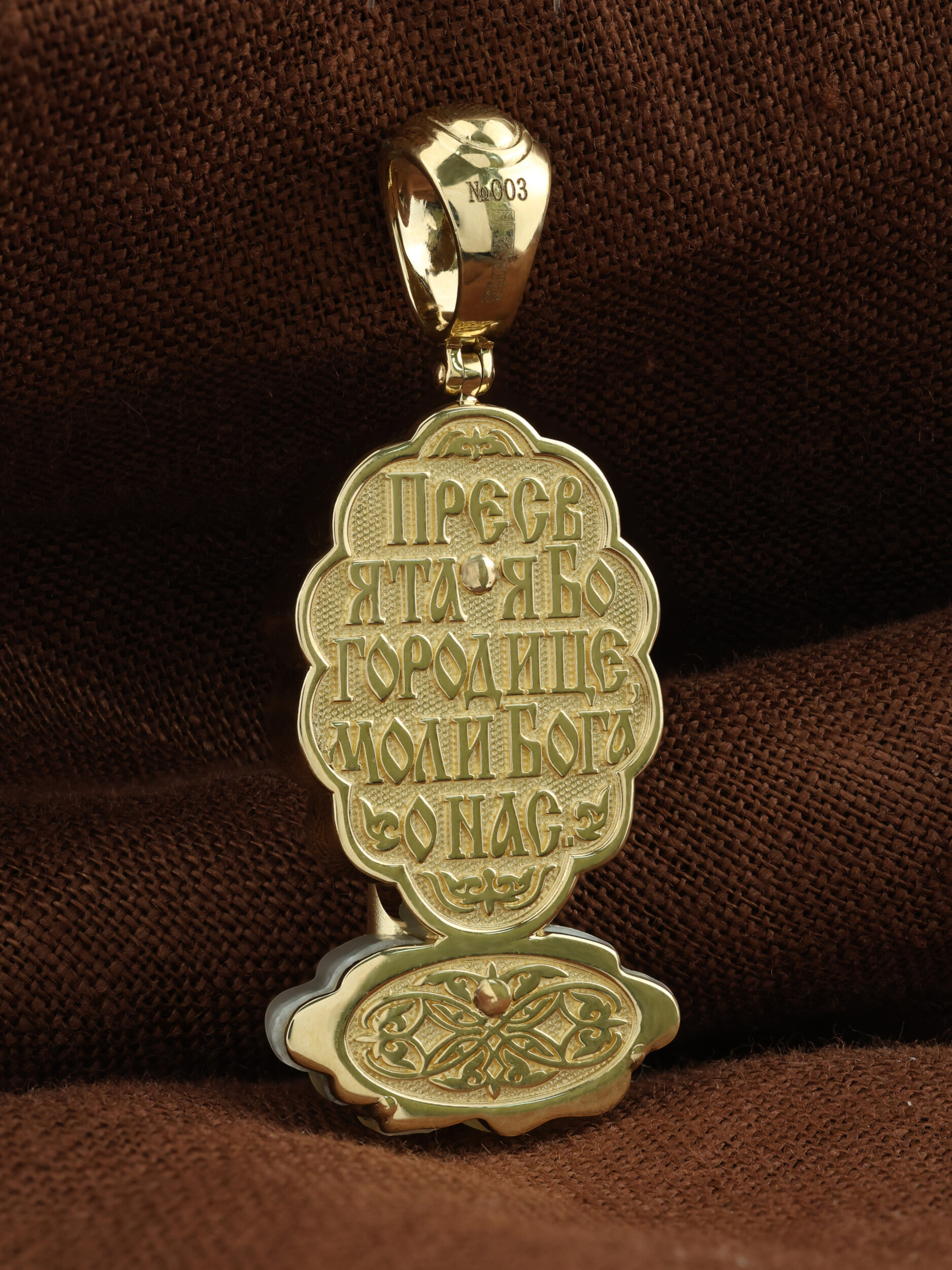 На оборотной стороне образка помещена молитва: «Пресвятая Богородице, моли Бога о нас.»