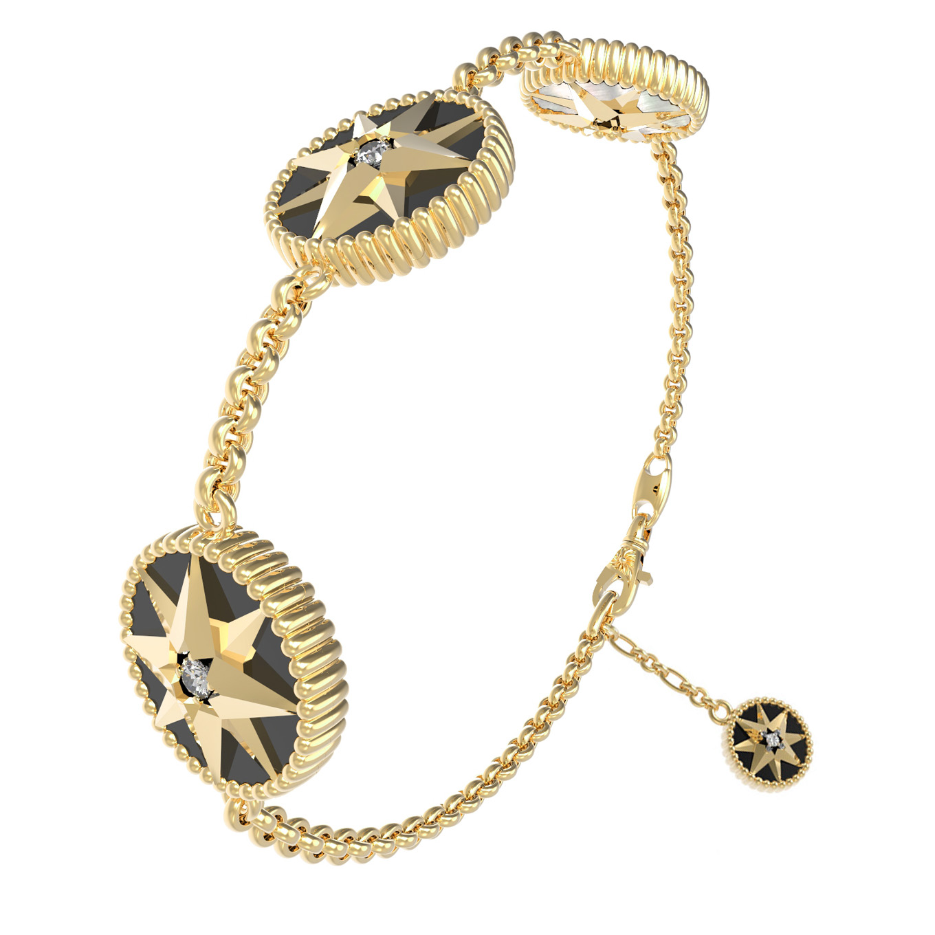Браслет из лимонного золота c фианитом, ониксом и перламутром