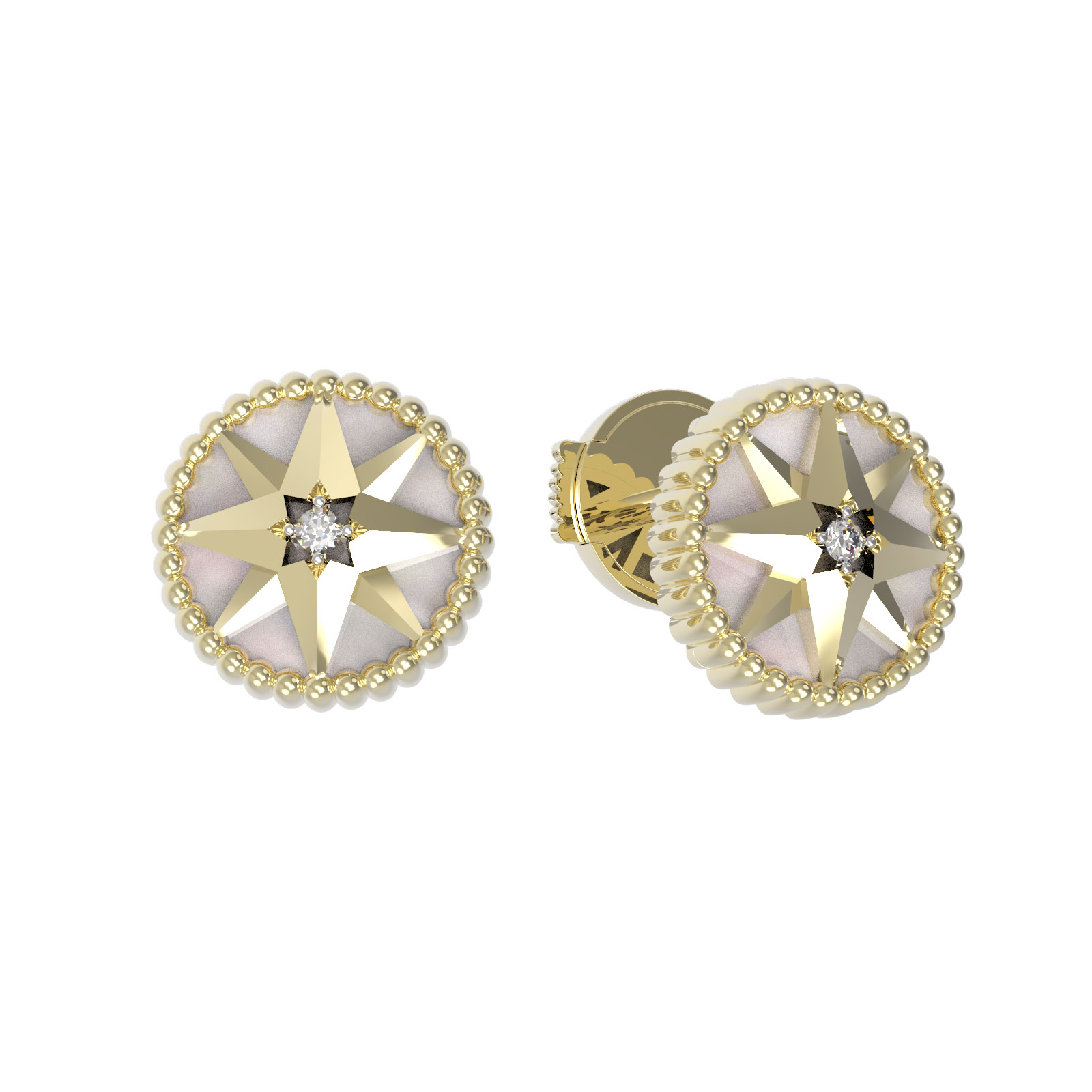 Серьги из лимонного золота c фианитом и перламутром