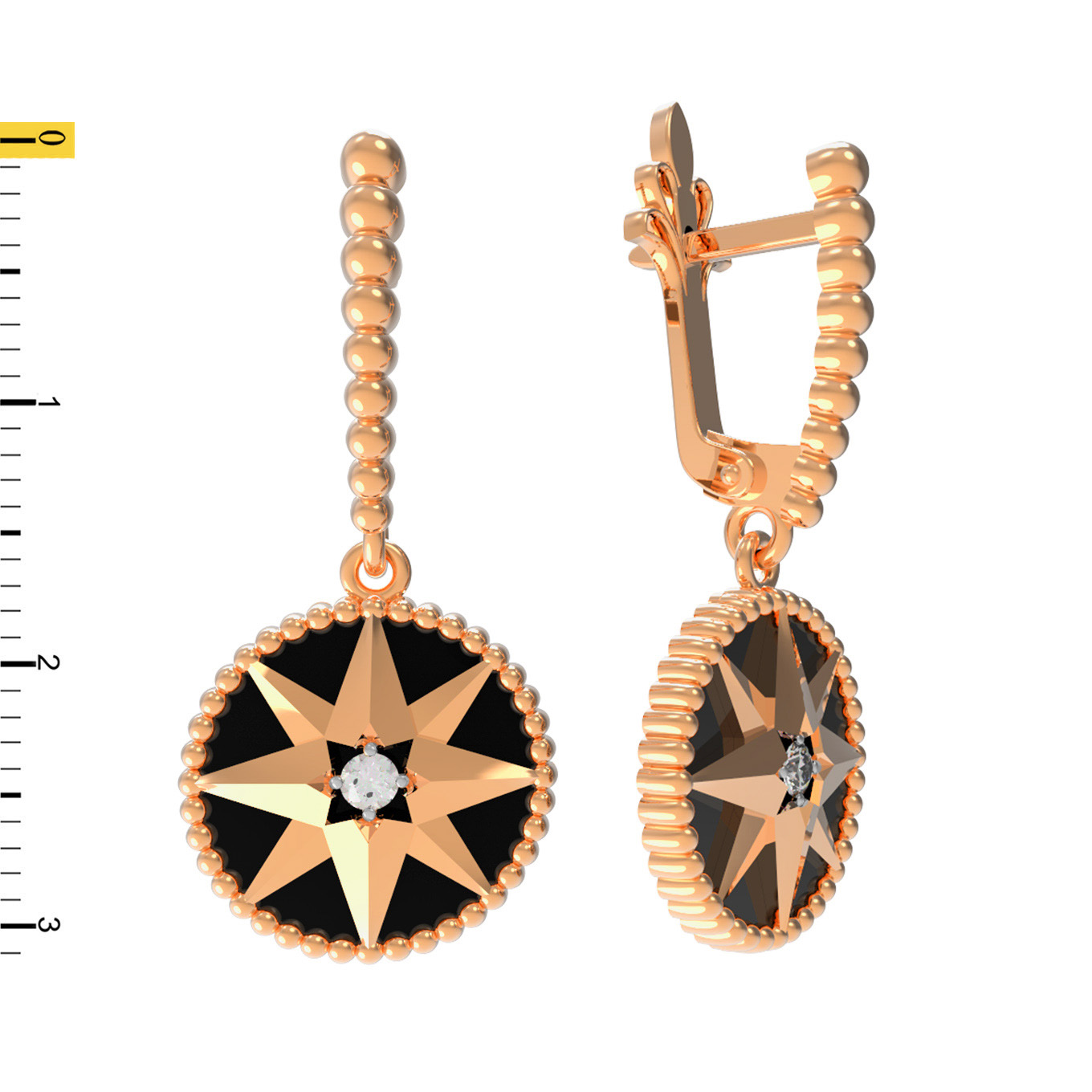 Серьги из золота c фианитом и ониксом