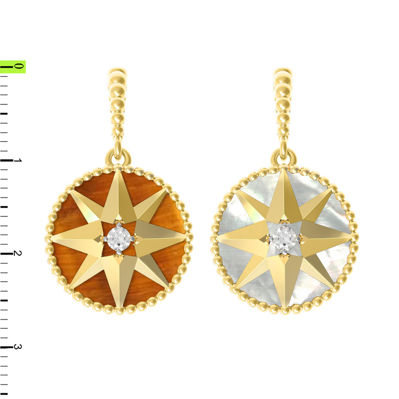 Подвеска из лимонного золота c фианитом, тигровым глазом и перламутром