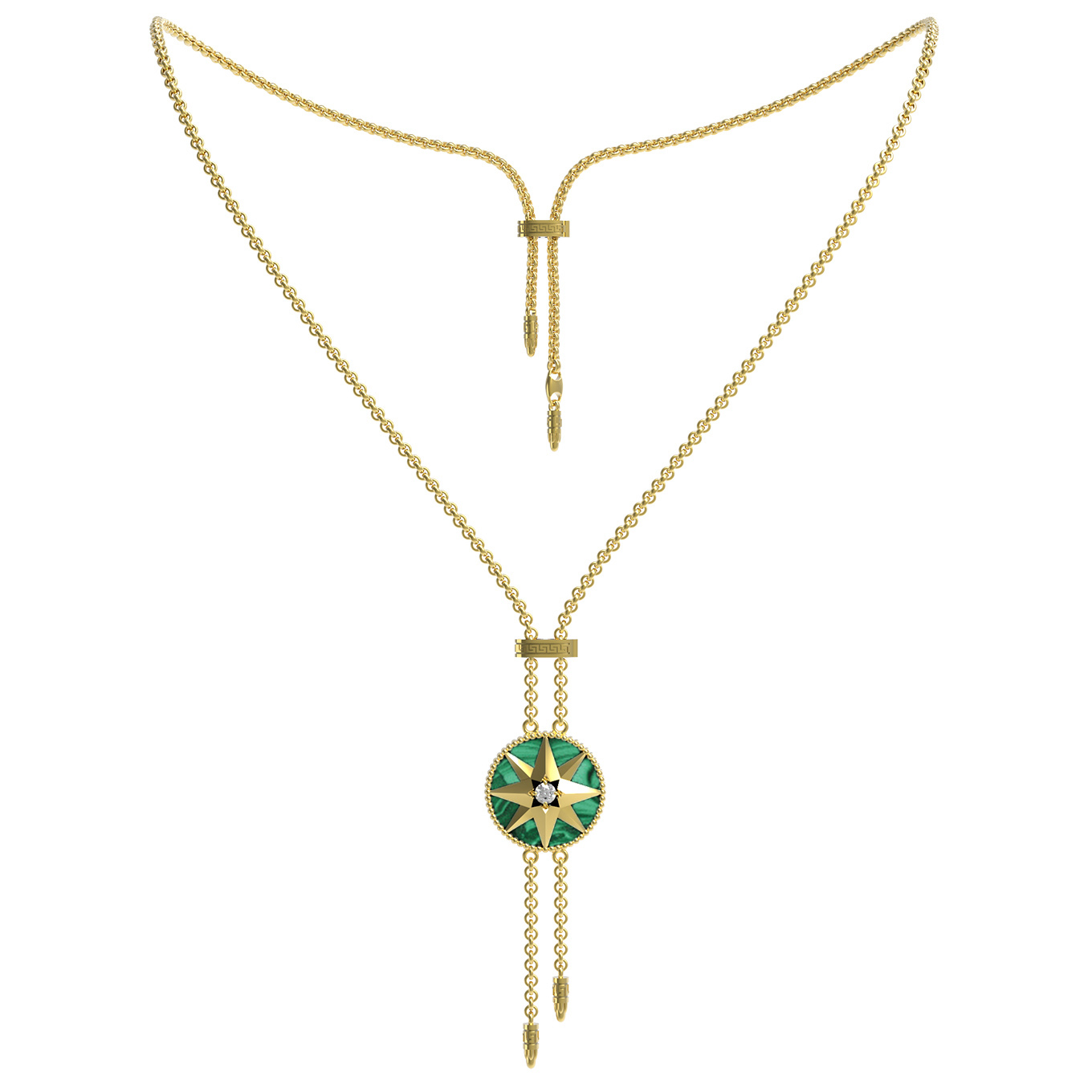 Колье из лимонного золота c фианитом, малахитом и перламутром