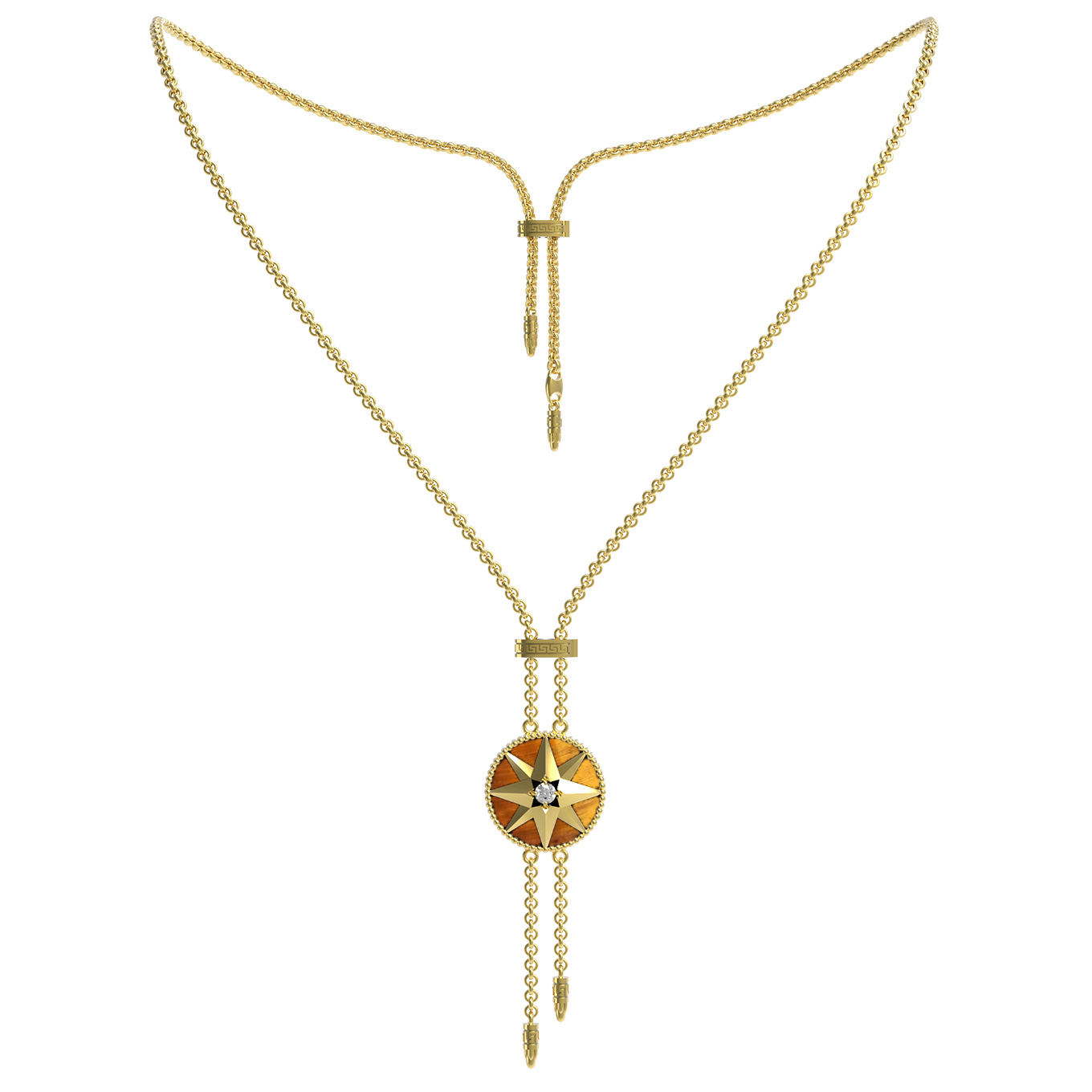 Колье из лимонного золота c фианитом, тигровым глазом и перламутром