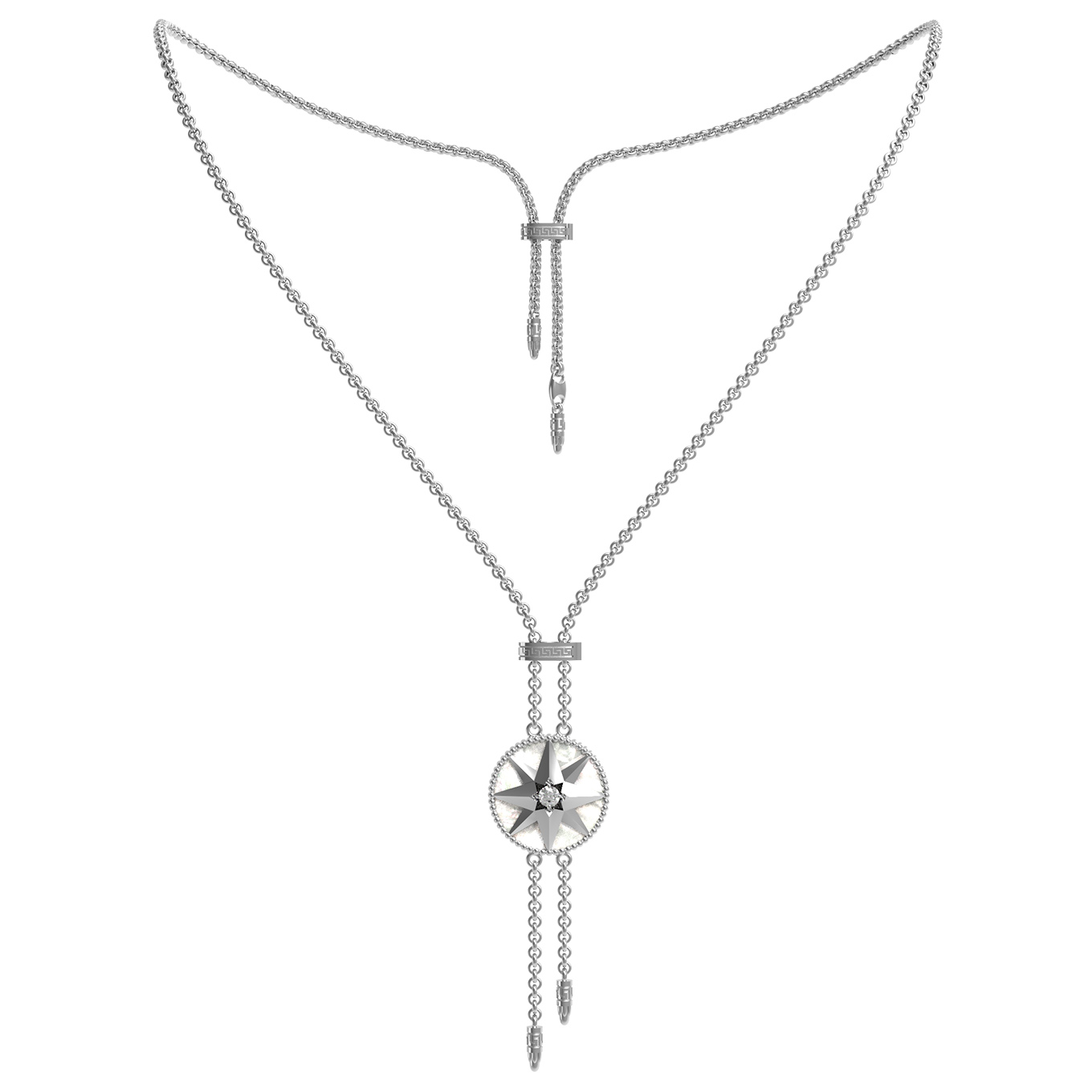Колье из белого золота c фианитом, лазуритом и перламутром