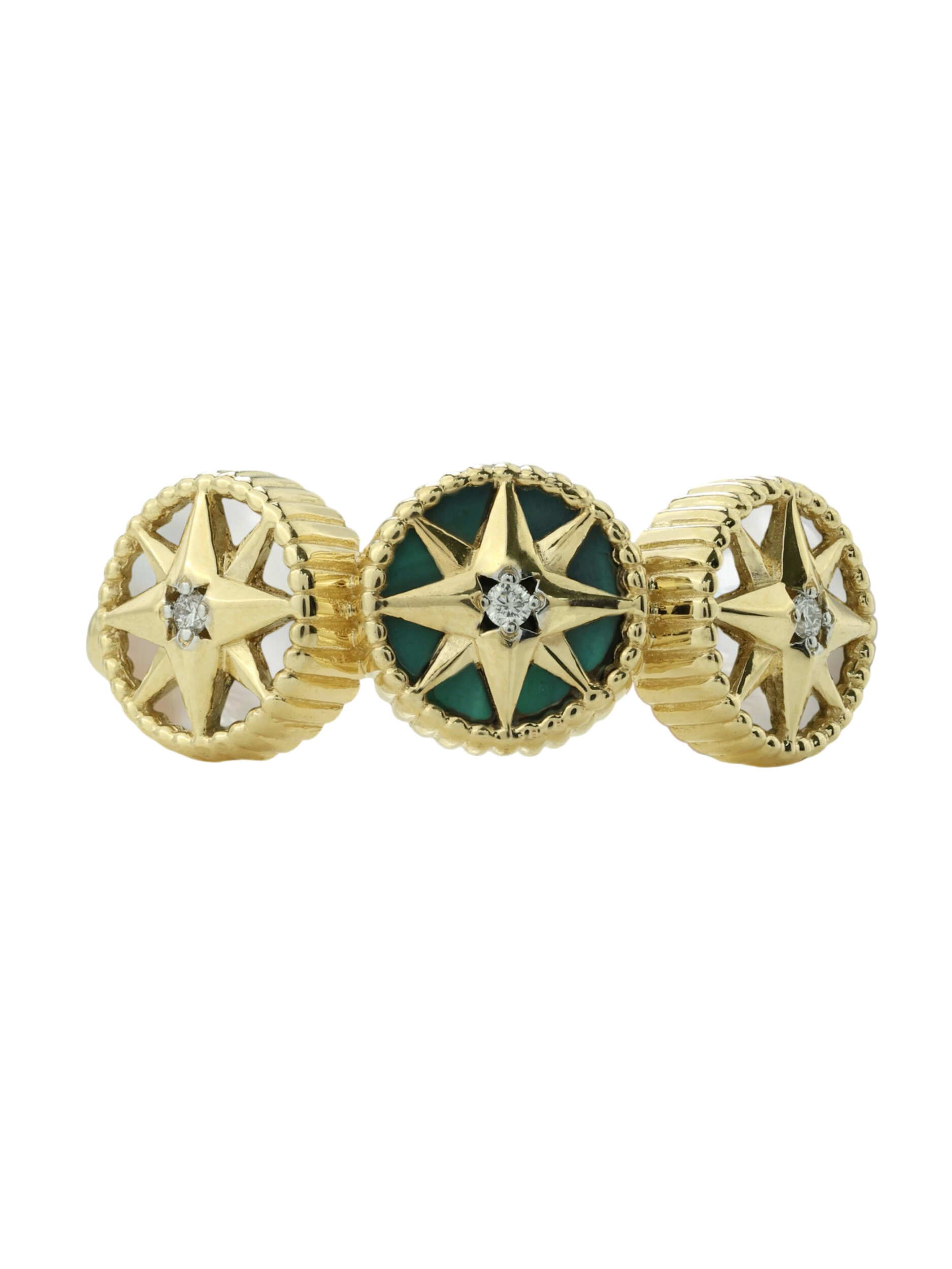 Кольцо из лимонного золота c бриллиантами, малахитом и перламутром