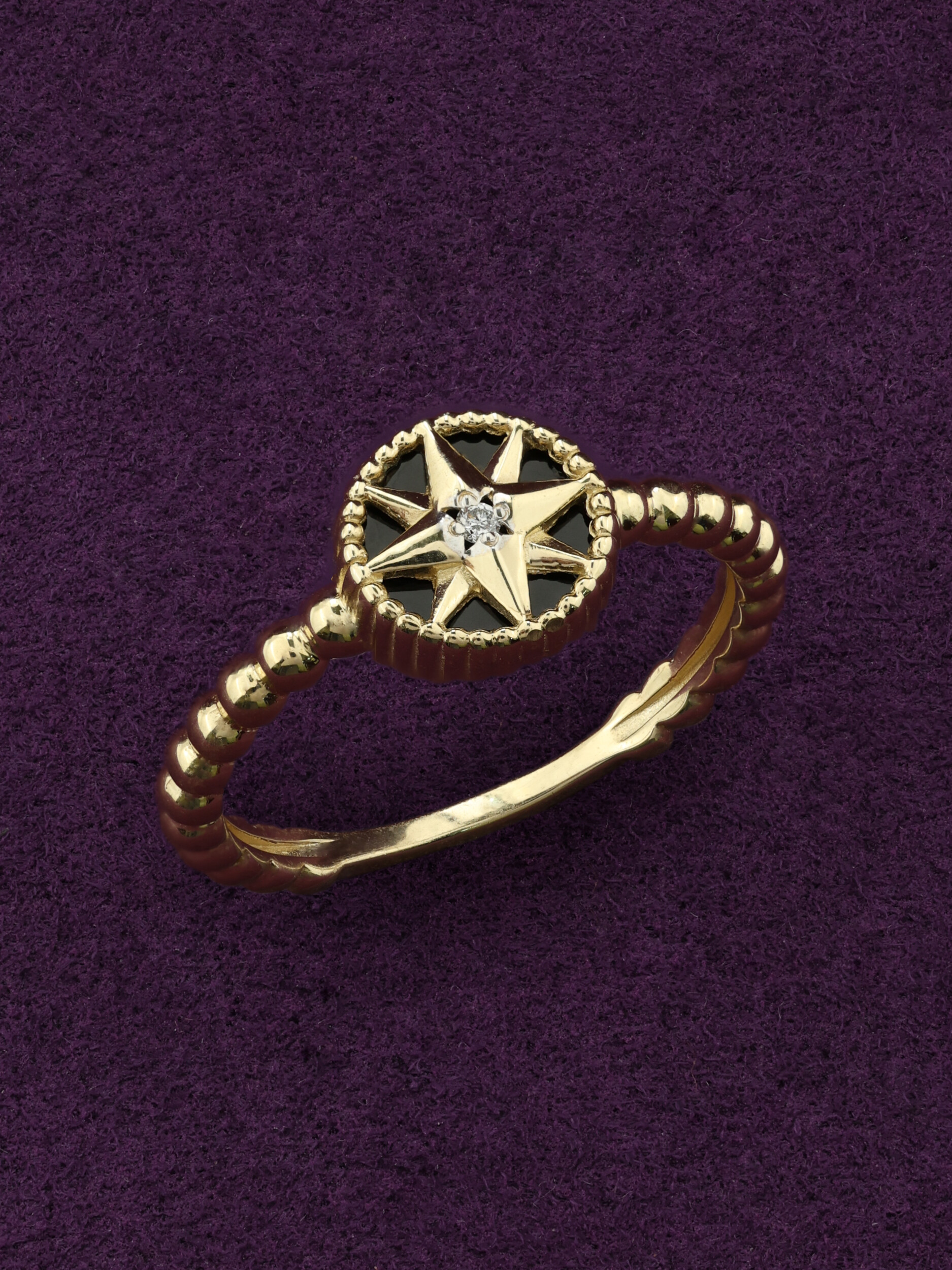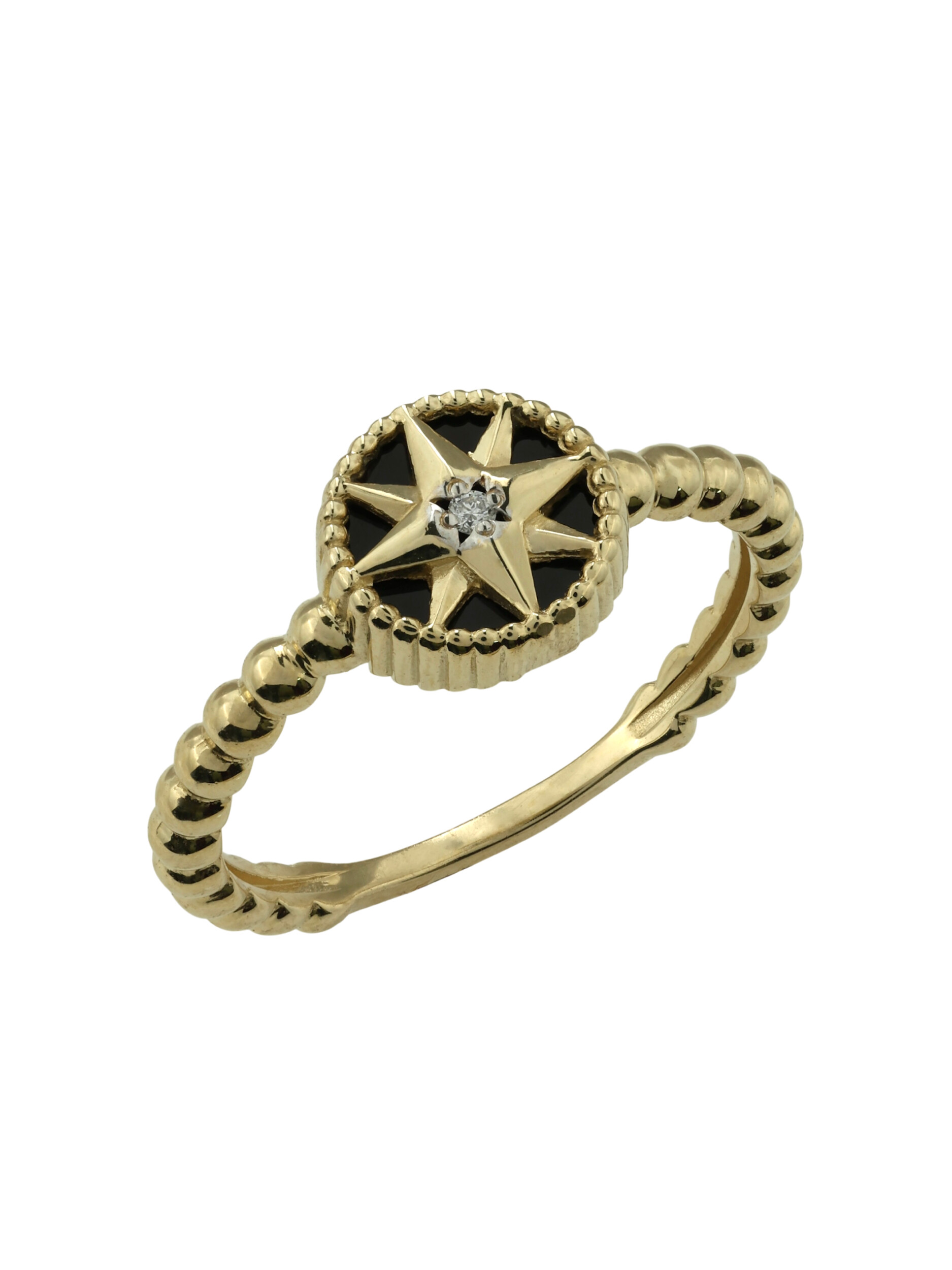 Кольцо из лимонного золота c бриллиантами и ониксом
