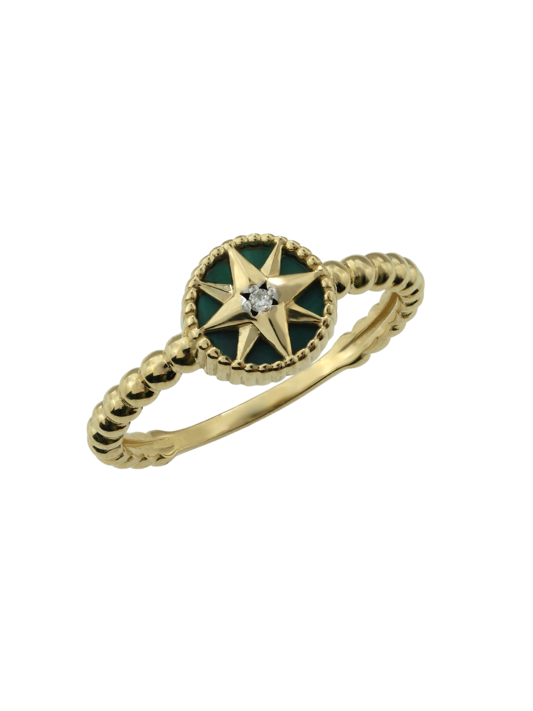 Кольцо из лимонного золота c бриллиантами и малахитом