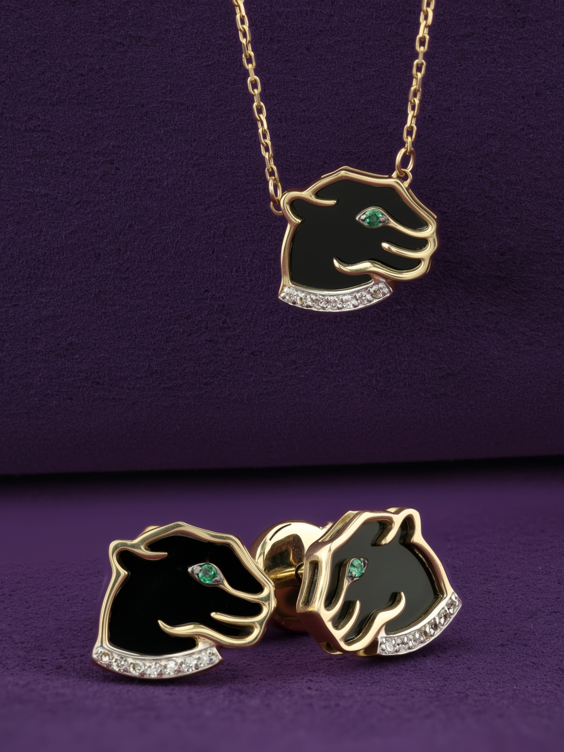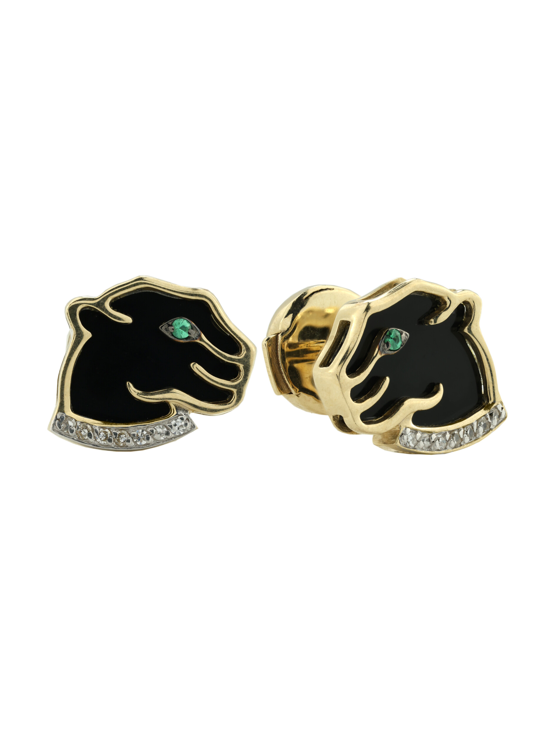Серьги из лимонного золота c бриллиантами, изумрудом и ониксом