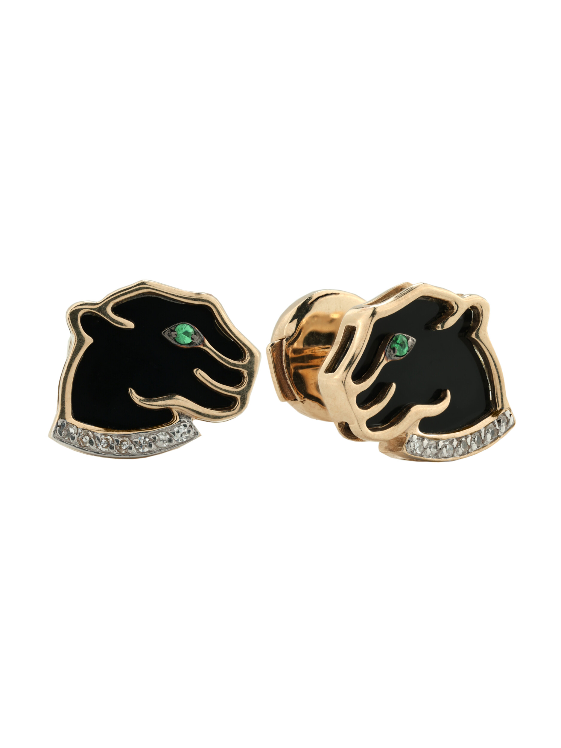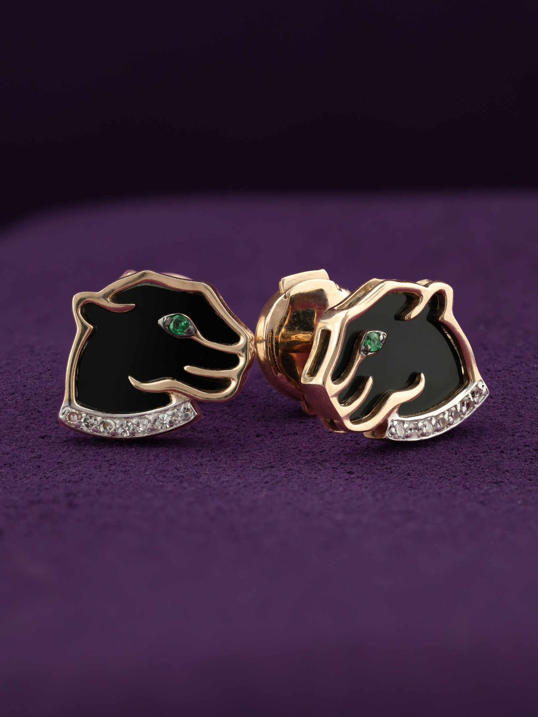 Серьги из золота c бриллиантами, изумрудом и ониксом