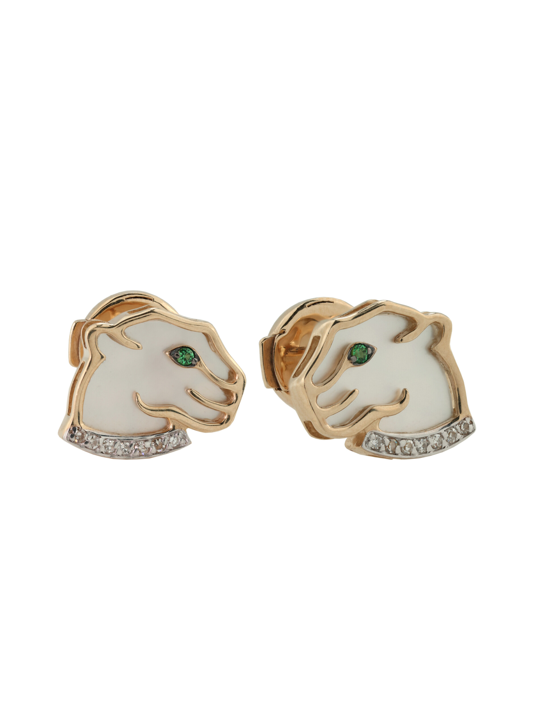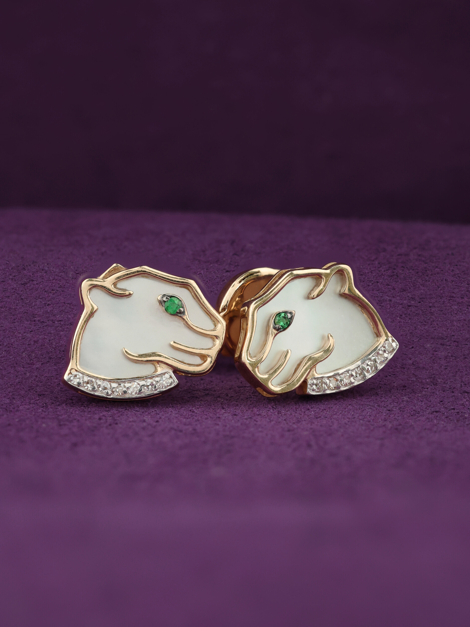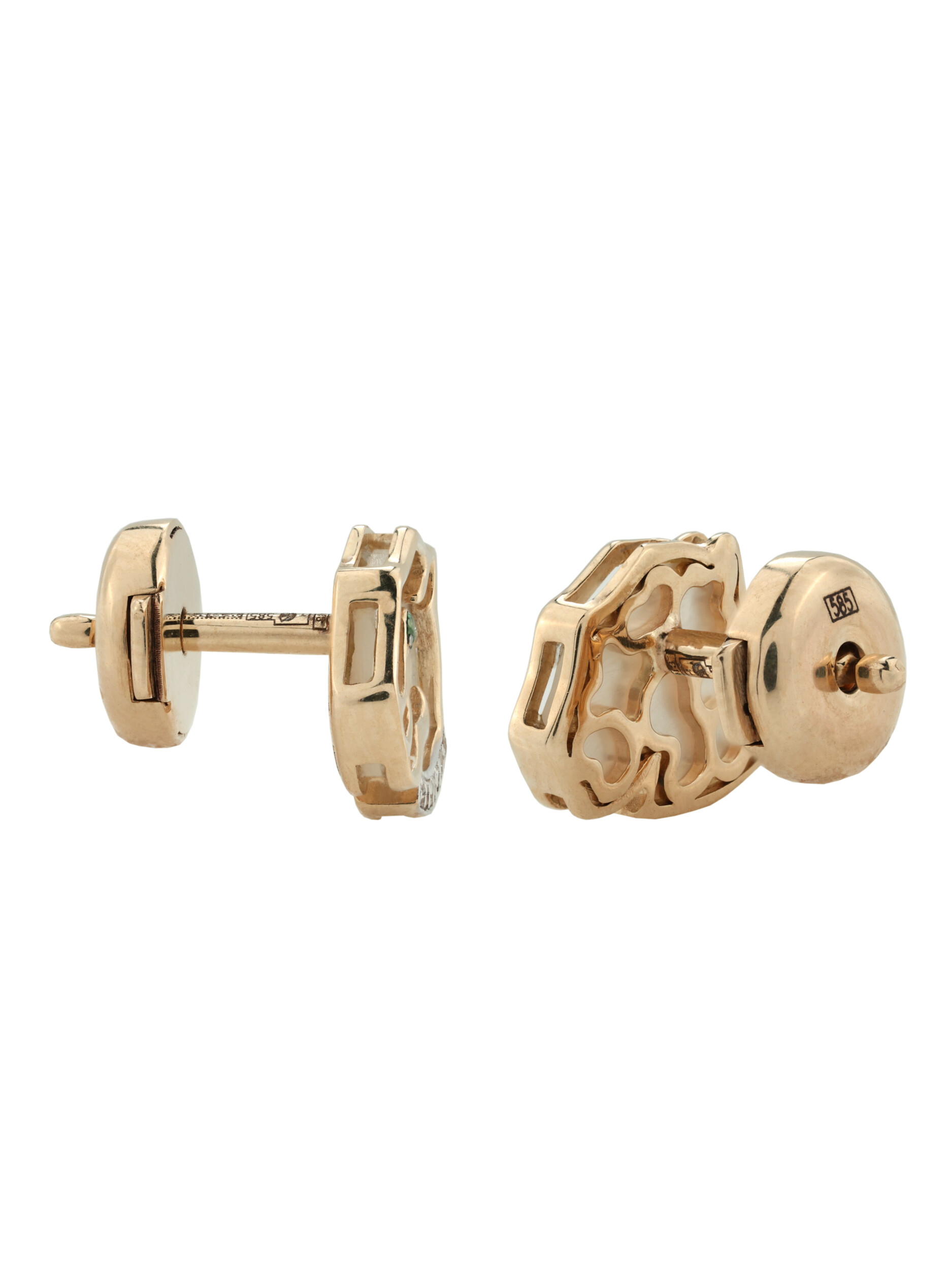 Серьги из золота c бриллиантами, изумрудом и перламутром