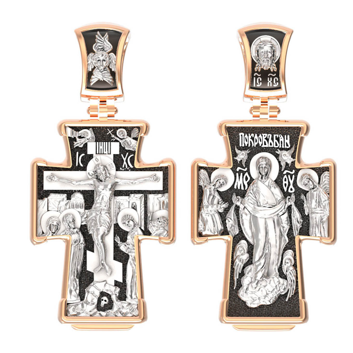 На обороте креста изображена икона Покрова Пресвятой Богородицы. Праздник Покрова Божией Матери является воспоминанием чуда, которое произошло во Влахнернской церкви 1 (14) октября 910 года: Пресвятая Богородица явилась верующим над алтарем храма и распростерла над ними Свое покрывало. В этот день Божия Матерь открыла людям, что Она является Ходатаицей за них перед Богом. Богородица простирает Свой молитвенный покров над всеми православными христианами и умоляет Сына Своего о даровании вечного спасения каждому человеку.