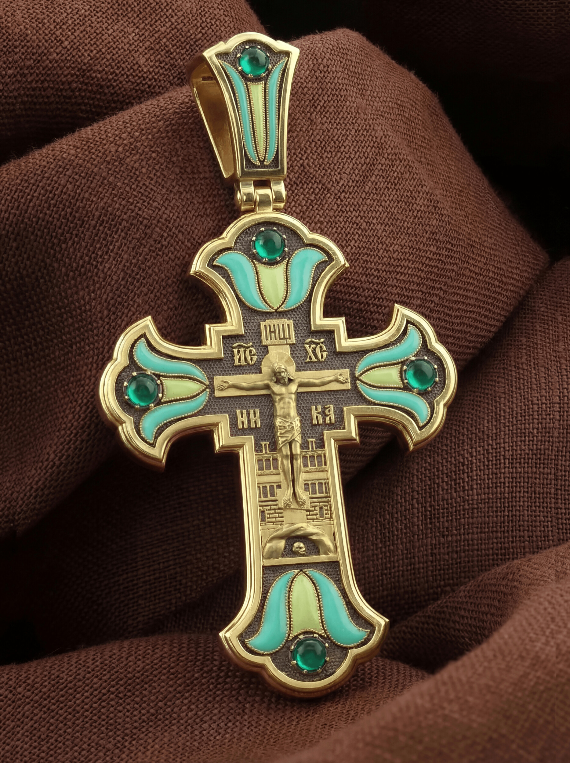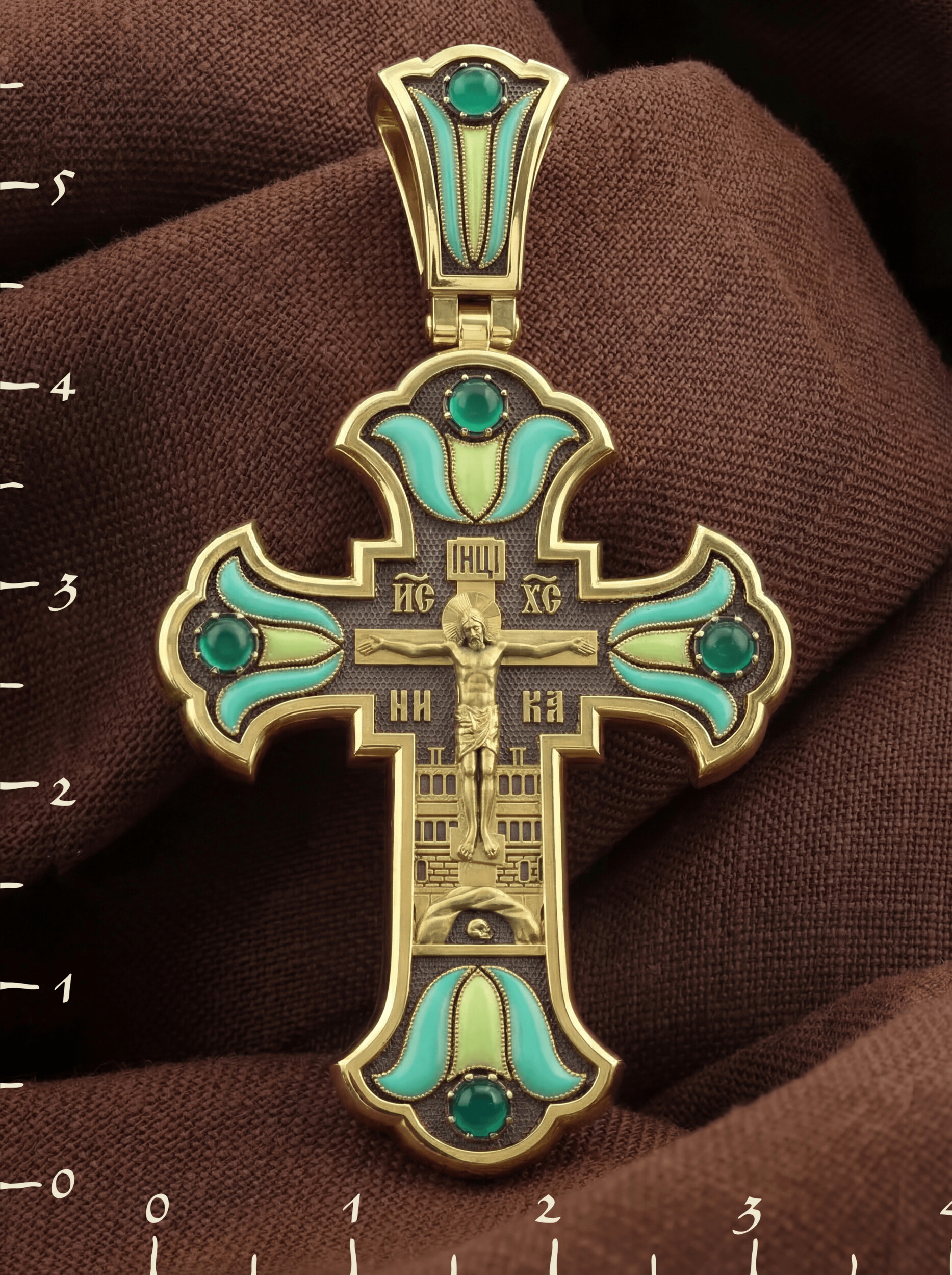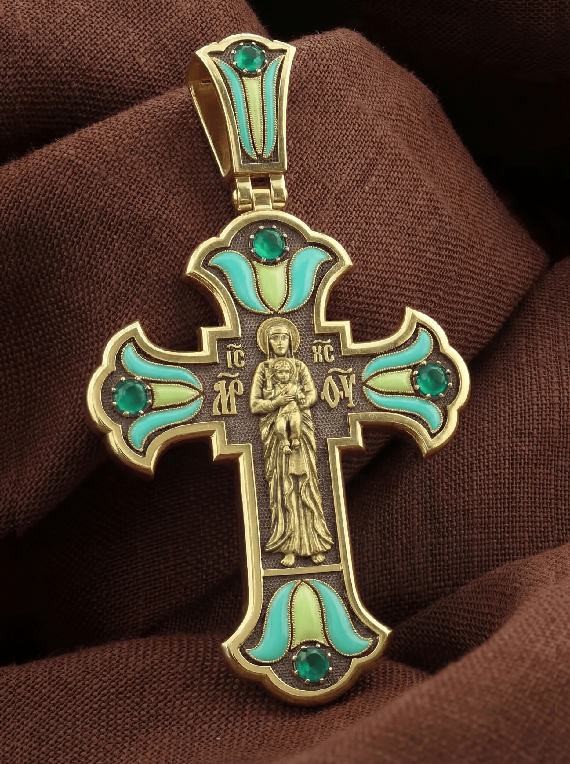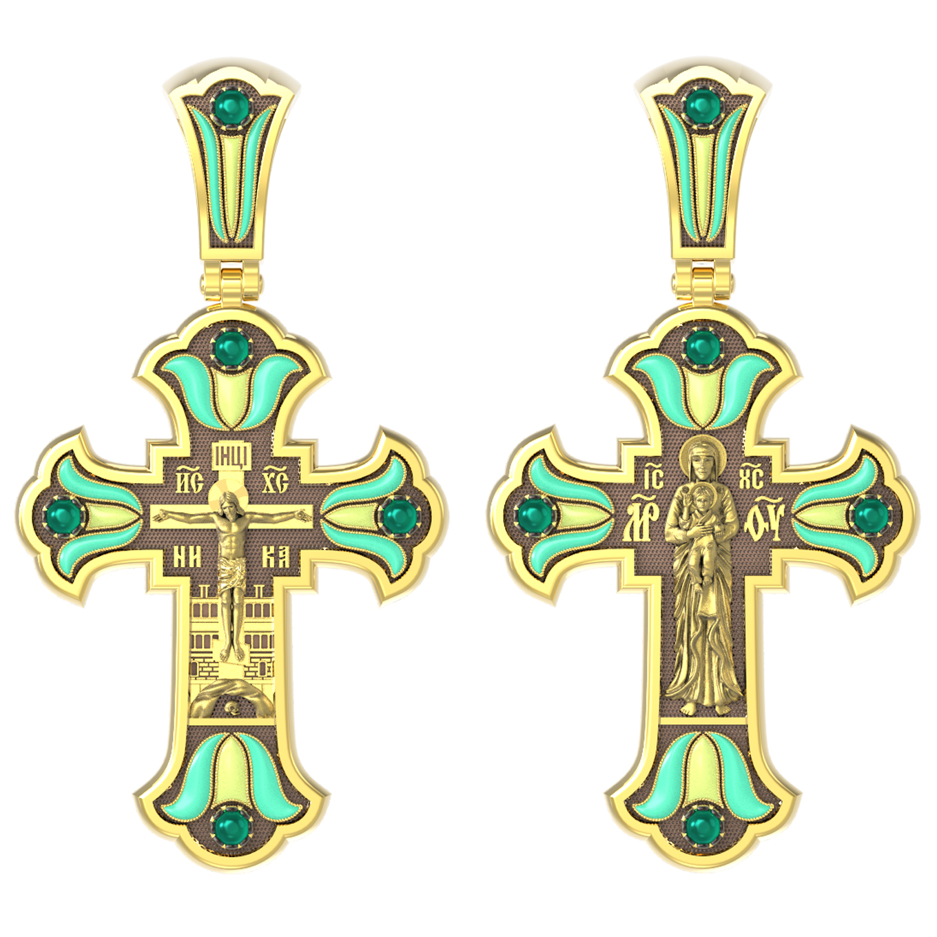 Крест из лимонного золота c эмалью и хризопразом