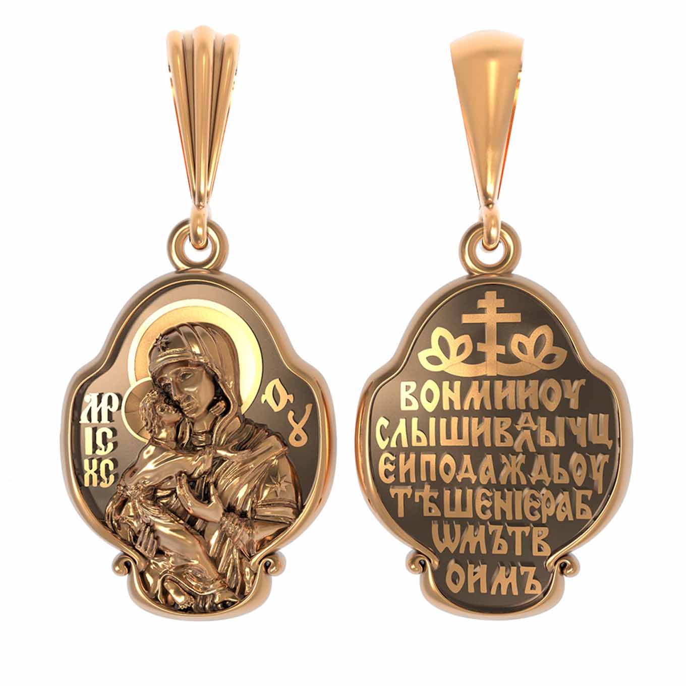 Лицевую сторону возглавляет Владимирская икона Божией Матери. По преданию, она была написана на доске трапезного стола из дома Иисуса Христа. На Русь икона была привезена в начале XII века и с тех пор почитается как главная святыня нашего Отечества. Перед ней молитвенно просят Богородицу об исцелении от телесных недугов, в частности, заболеваний сердца и сердечно-сосудистой системы. За помощью к Владимирской иконе Божией Матери обращаются во время бедствий, когда нуждаются в защите от врагов.