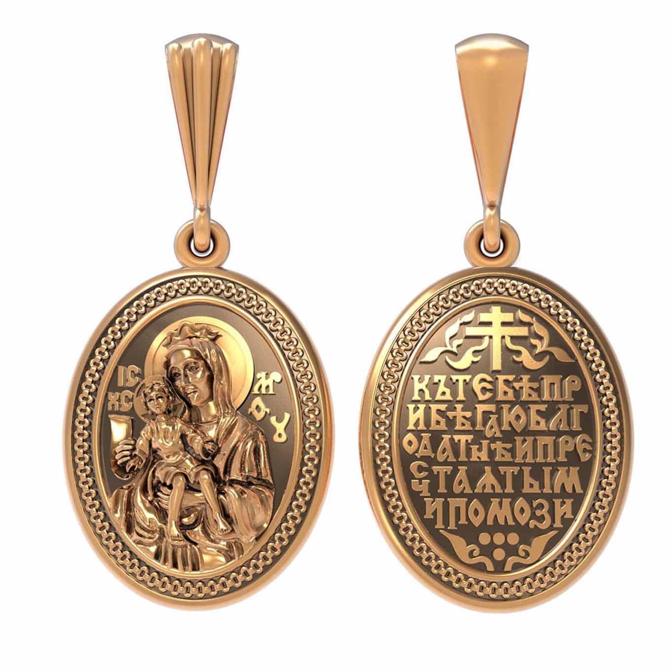 На обороте образка написана молитва: «К Тебе прибегаю Благодатной, Пречистая Ты мне помоги».