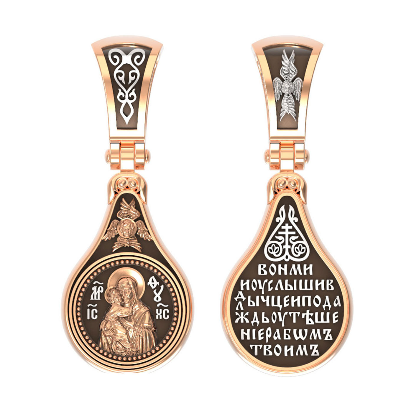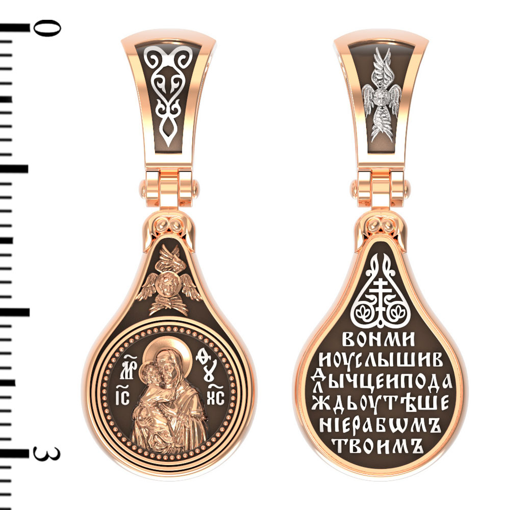 На лицевой стороне образка изображена Владимирская икона Божией Матери.