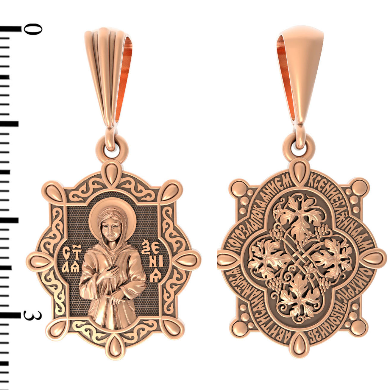 На лицевой стороне образка изображена Святая блаженная Ксения Петербургская, в миру Ксения Григорьевна Петрова.