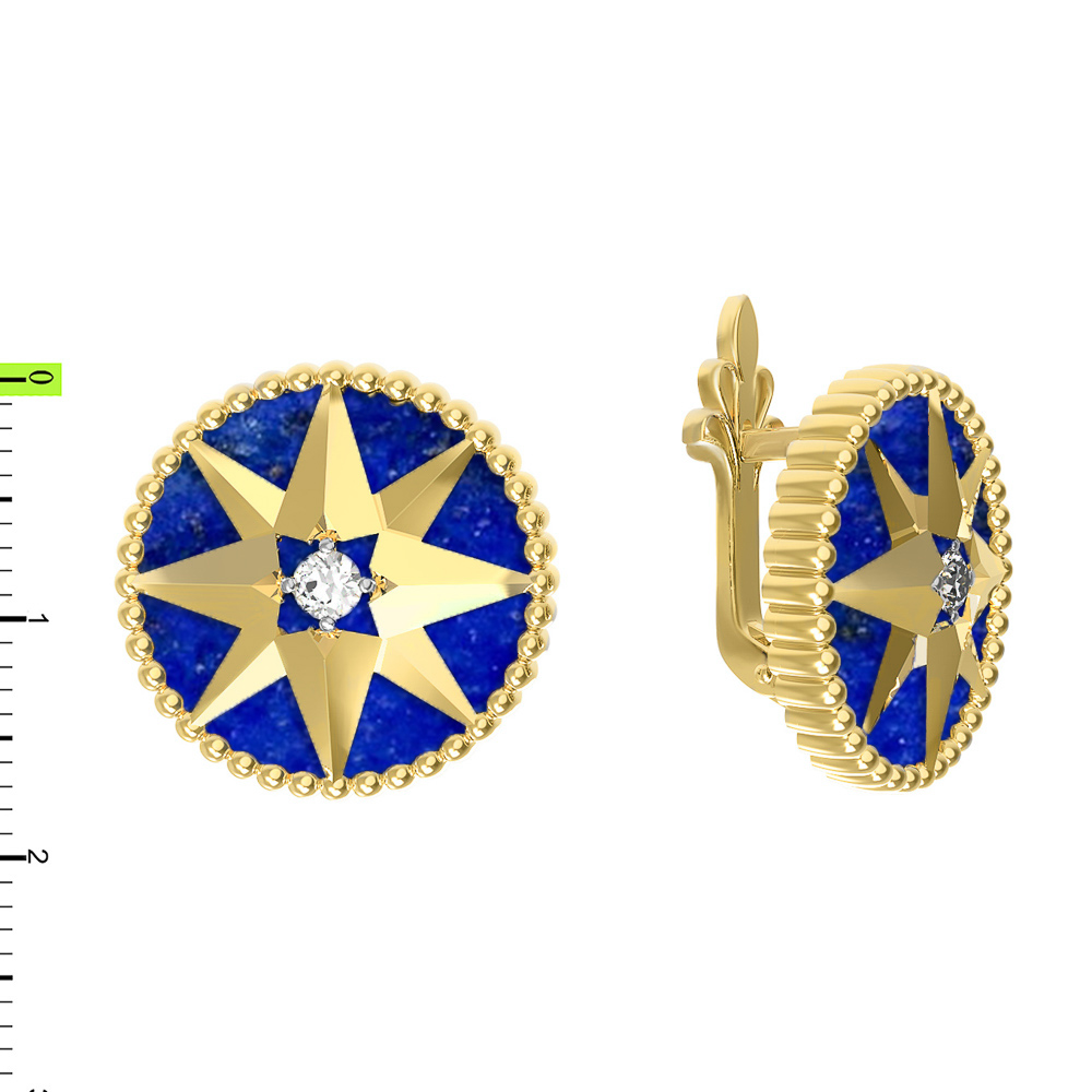 Серьги из лимонного золота c фианитом и лазуритом