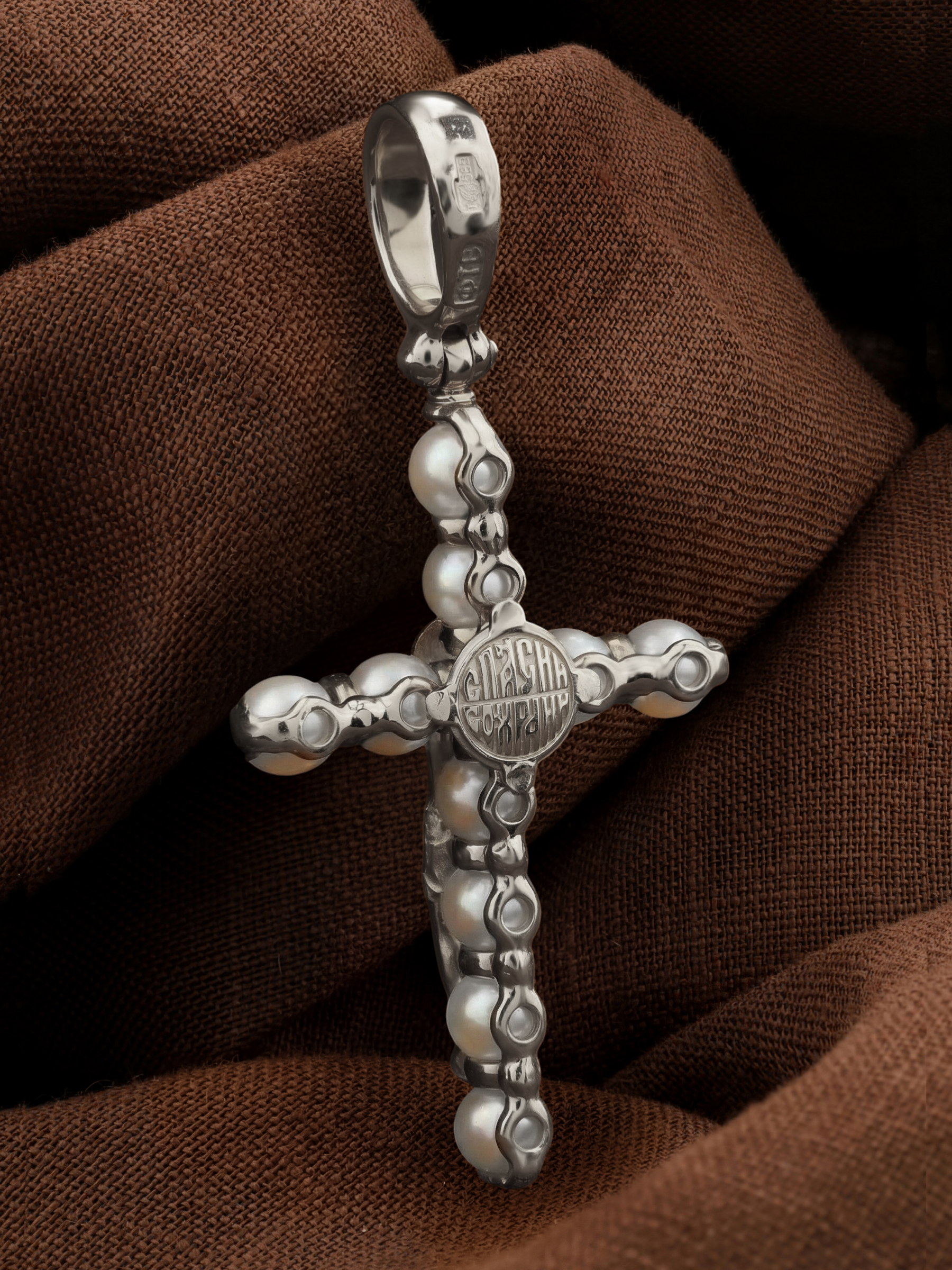 Крест из белого золота c жемчугом
