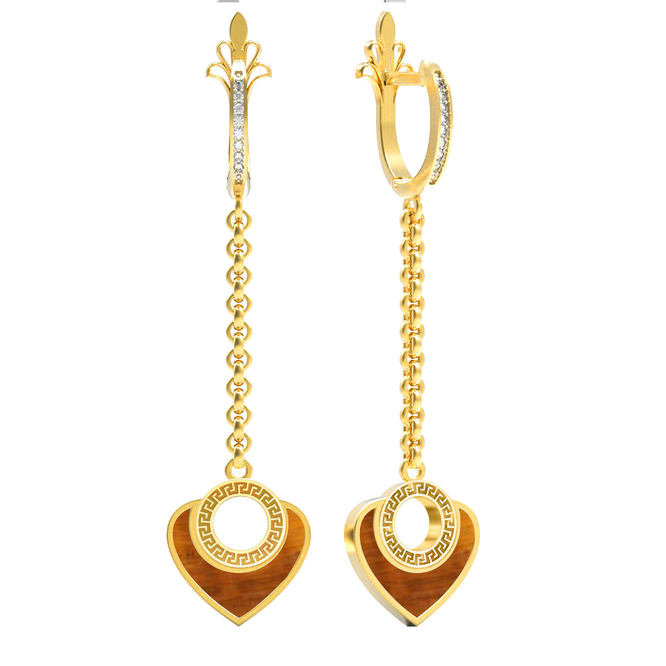 • Серьги из золота c фианитом и тигровым глазом