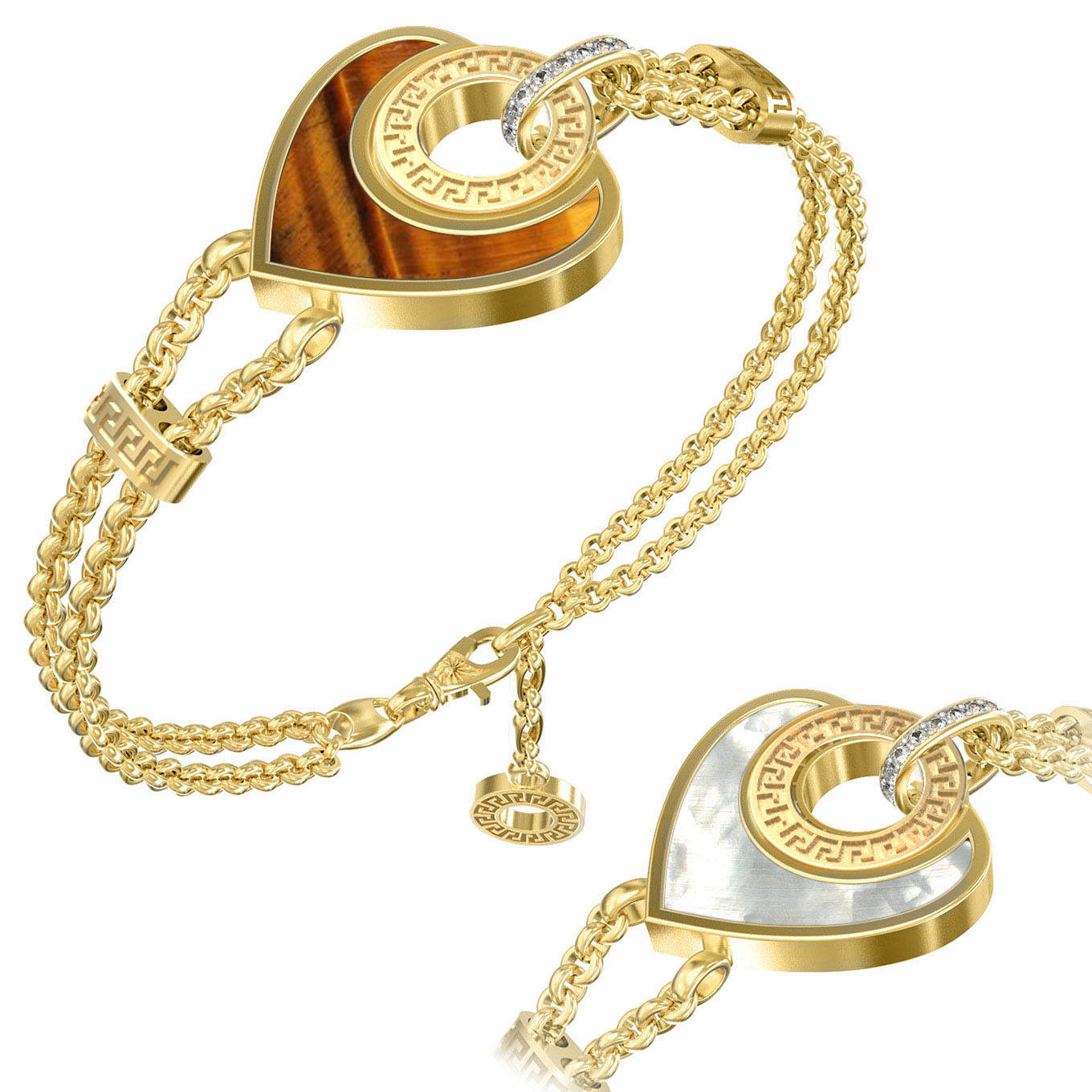 Браслет из лимонного золота c фианитом, тигровым глазом и перламутром