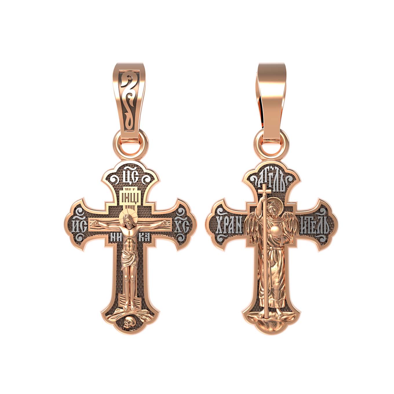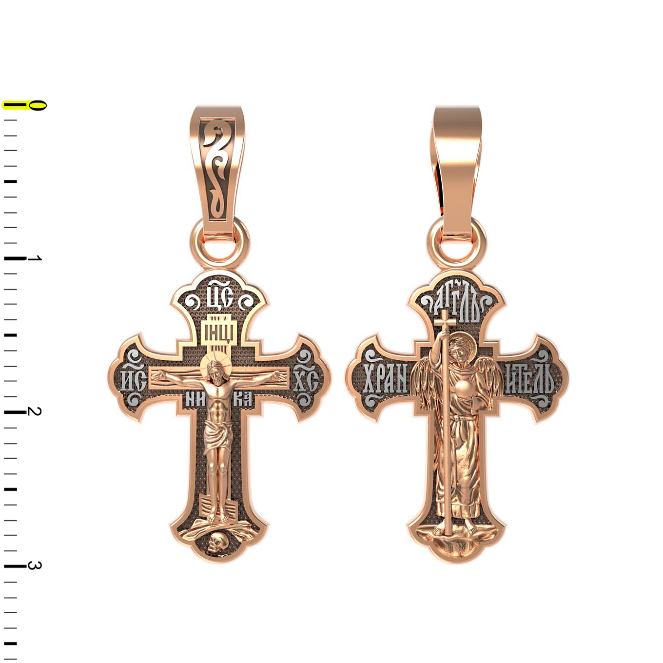 На оборотной стороне креста изображен святой Ангел-Хранитель в виде прекрасного юноши держащего в правой руке крест, а в левой — сферу. Ангел-Хранитель — это Ангел приставляемый Богом к человеку при крещении для охраны и помощи в добрых делах. Невидимо пребывая при нас постоянно, он, руководствуя нас ко спасению, не только по нашему желанию таинственно наставляет нас на все доброе и полезное, не только возносит наши молитвы к Богу, но еще и сам от себя охраняют и защищают нас от врагов видимых и невидимых, ходатайствует за нас пред Богом.