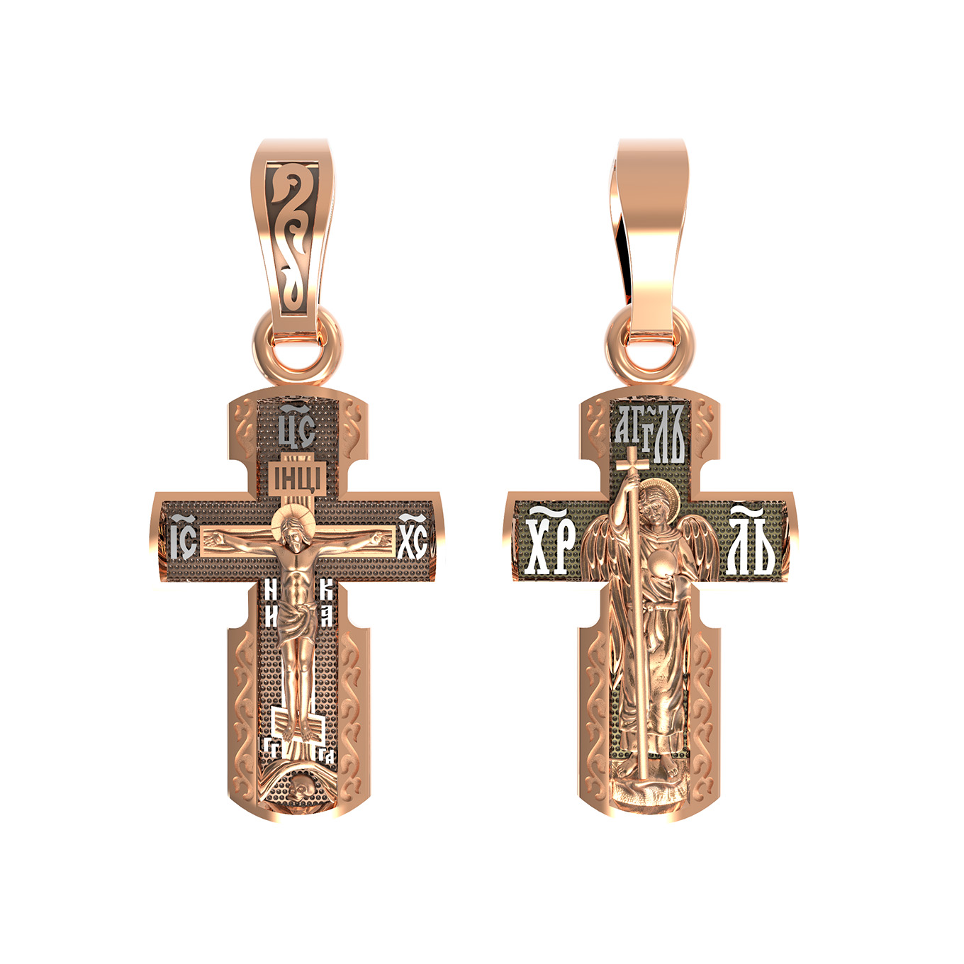 На оборотной стороне креста изображен святой Ангел-Хранитель в виде прекрасного юноши держащего в правой руке крест, а в левой — сферу. Ангел-Хранитель — это Ангел приставляемый Богом к человеку при крещении для охраны и помощи в добрых делах. Невидимо пребывая при нас постоянно, он, руководствуя нас ко спасению, не только по нашему желанию таинственно наставляет нас на все доброе и полезное, не только возносит наши молитвы к Богу, но еще и сам от себя охраняют и защищают нас от врагов видимых и невидимых, ходатайствует за нас пред Богом.