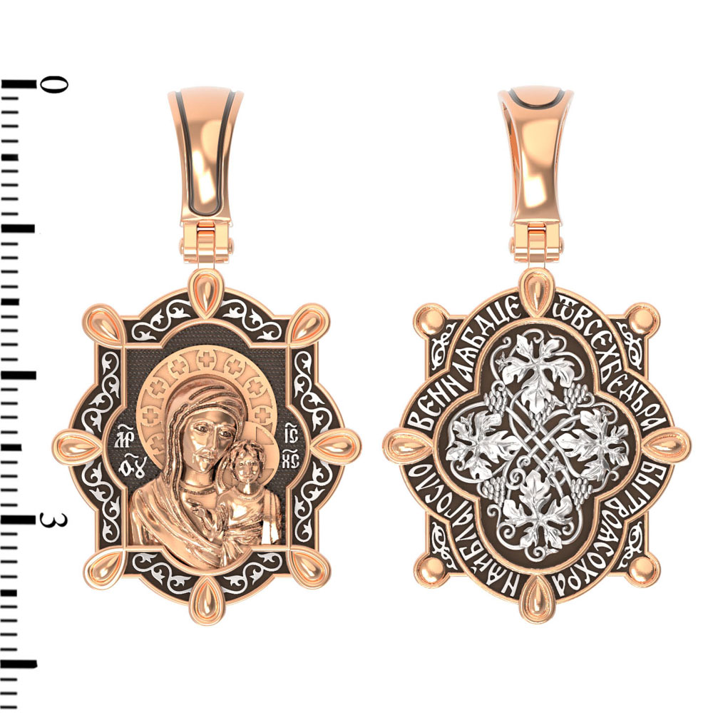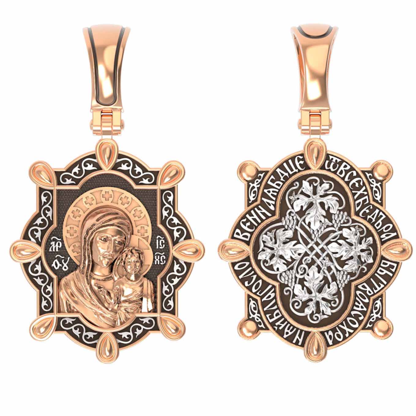 На лицевой части образка изображена Казанская икона Пресвятой Богородицы — одна из самых почитаемых в России чудотворных икон Богородицы. Богословское значение Казанской иконы — указать верующим истинный Путь к спасению, который лежит через Христа. Только Божия Матерь имеет настолько сильное дерзновение к Спасителю, что может ходатайствовать перед Ним за всех верных. Именно этот образ дарится новой повенчанной паре, как хранитель очага и семейная реликвия. Молитва перед Казанской иконой Божьей Матери помогает во всех сложных случаях жизни, в болезнях, во всех печалях, невзгодах, скорбях. Уникальная история появления, чудеса, случившиеся по молитвам православных людей возле образа — все это делает Казанскую Богородицу особенной, среди тысяч других икон.