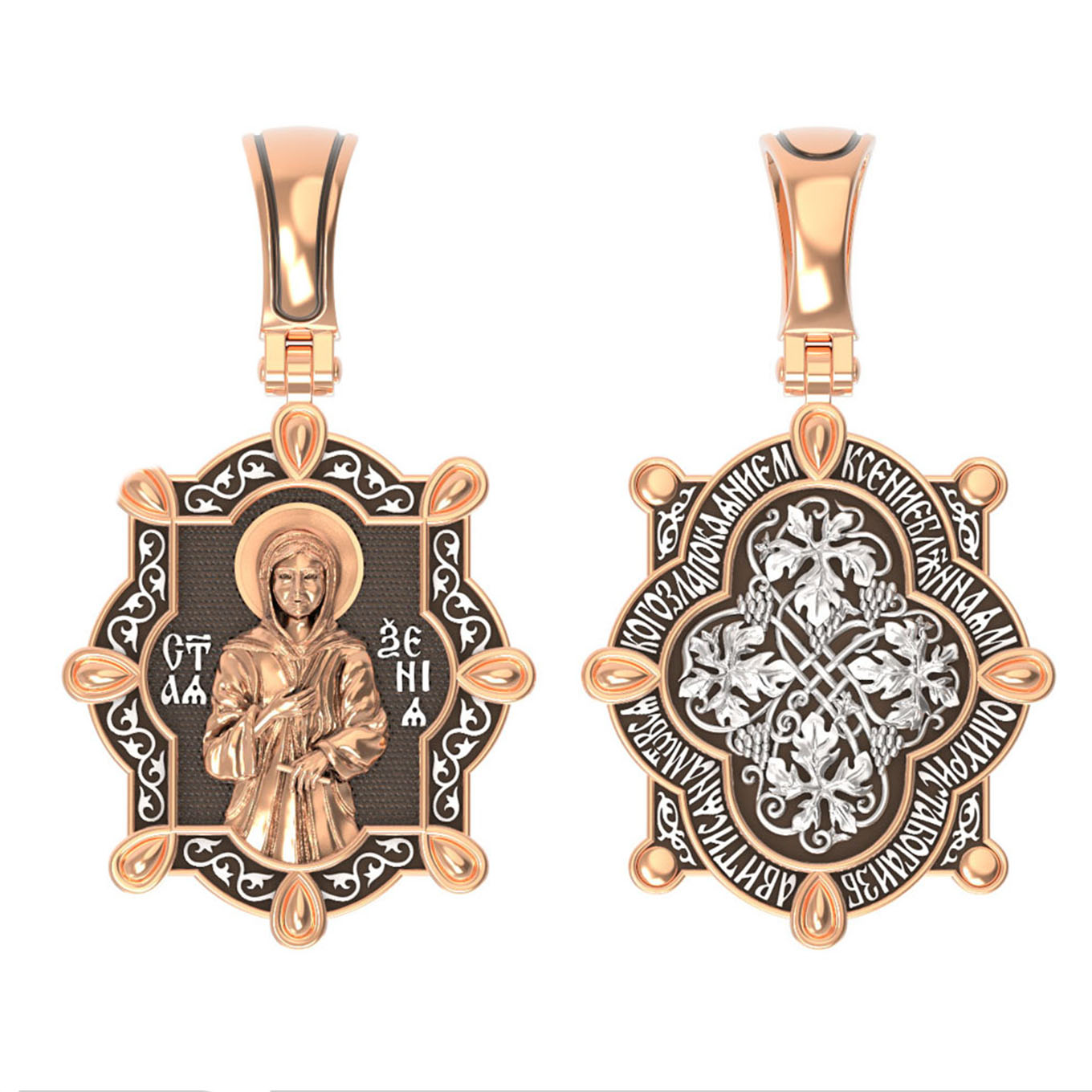 На оборотной стороне изображена виноградная лоза — символы церкви и евхаристии. «Я есмь лоза, — говорил Иисус Христос Своим ученикам, — а вы ветви; кто пребывает во Мне, и Я в нем, тот приносит много плода» (Ин. 15, 5), «Я есмь истинная виноградная лоза, а Отец Мой — виноградарь». Вокруг образка написана молитва: «Ксение блаженная, моли Христа Бога избавитися нам от всякаго зла покаянием».