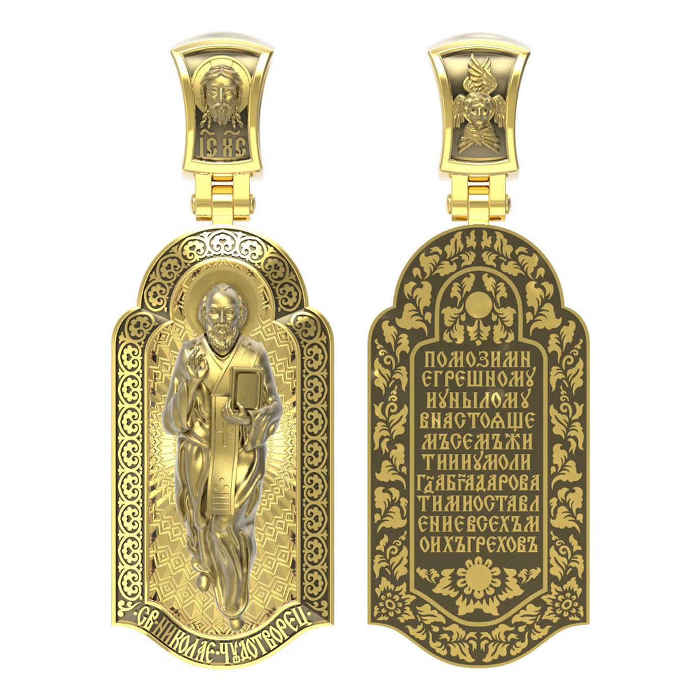 На лицевой стороне образка изображен Святитель Николай архиепископ Мир Ликийских, Чудотворец. Он является одним из самых почитаемых святых в православном мире. Избранник Божий Николай стал вершиной всех добродетелей. С кем из величайших праведников не сравнялся он образом духовной красоты, кому из них не последовал в своих деяниях и чудотворениях? Всеблаженный Николай был кроток, как Моисей, мужественен, как Давид, славен простотой нрава, как Иаков. Словно Ной, он спасал стадо Господне в новом ковчеге от потопа ересей. Вся жизнь святого Николая — это служение Богу. Много великих чудес сотворил на земле и на море великий Святитель Николай Угодник. Он укрощал штормы, спасал от потопления и выносил на сушу из глубины морской, освобождал из плена и приносил освобожденных домой, избавлял от уз и темницы, освобождал от смерти и подавал многим различные исцеления: слепым — прозрение, хромым — хождение, глухим — слух.