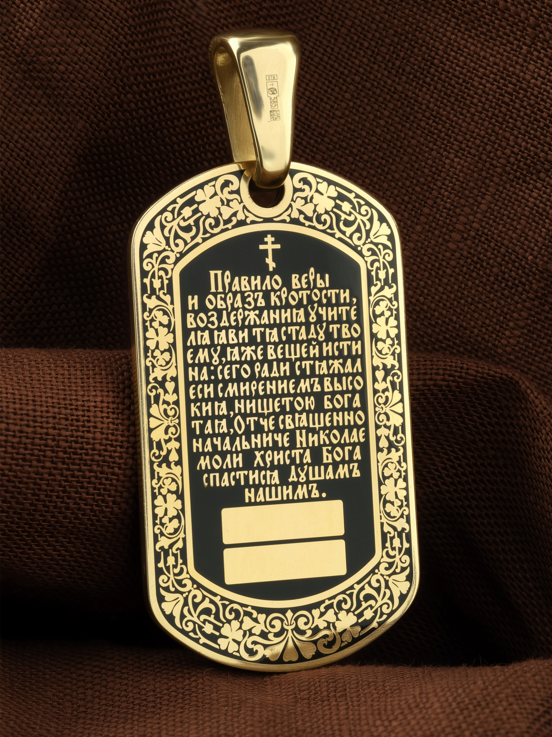 Лицевую сторону возглавляет икона Святителя Николая Чудотворца. Живший в III веке епископ Ликийского города Миры — самый почитаемый святой не только в России, но и во всем мире. Николай Чудотворец, помощник в делах, покровитель учащихся, утешитель обиженных и нуждающихся, целитель самых страшных и тяжелых недугов, предстатель и молитвенник за людей перед Богом. Также Святитель Николай Чудотворец известен своими молитвами за путешественников, когда непрестанный ветер и бушующие волны утихают и корабль заходит в спокойную гавань.