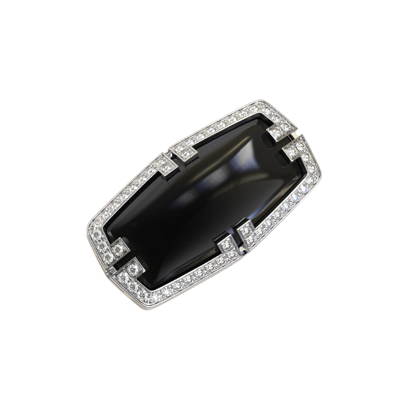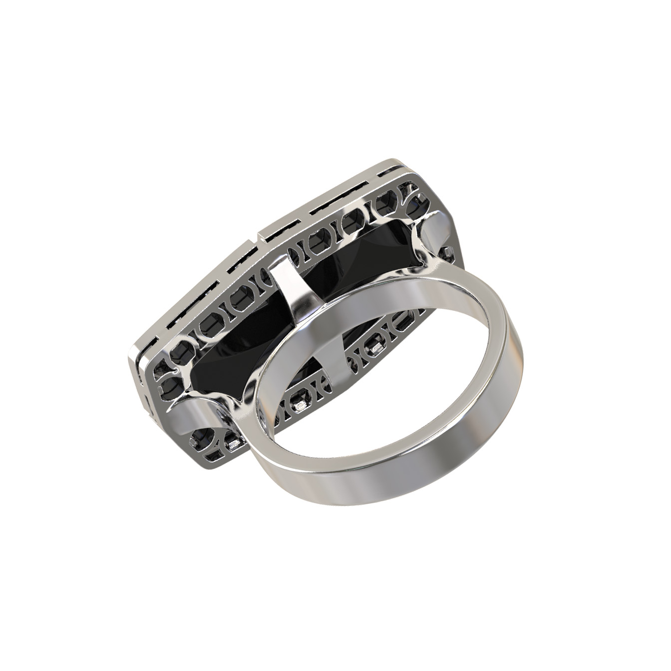 Кольцо из белого золота c бриллиантами, рубином и ониксом