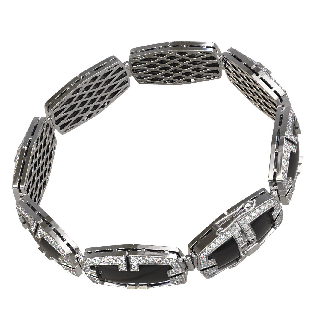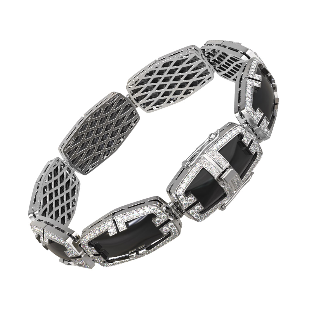 Браслет из белого золота c бриллиантами, рубином и ониксом