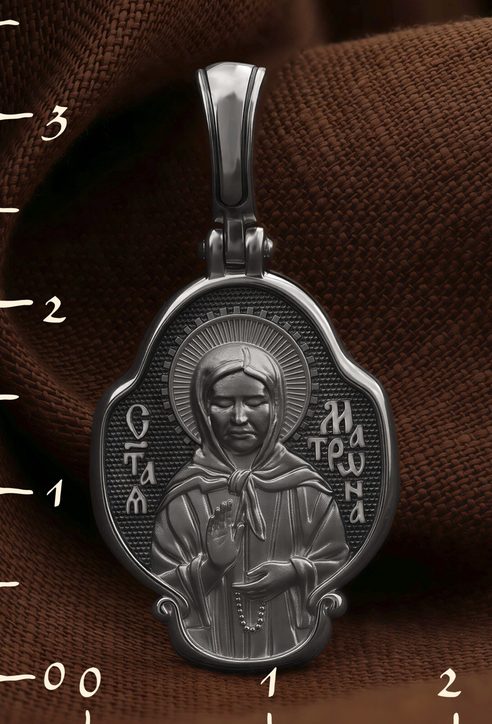 На лицевой стороне образка изображена Святая Матрона Московская.