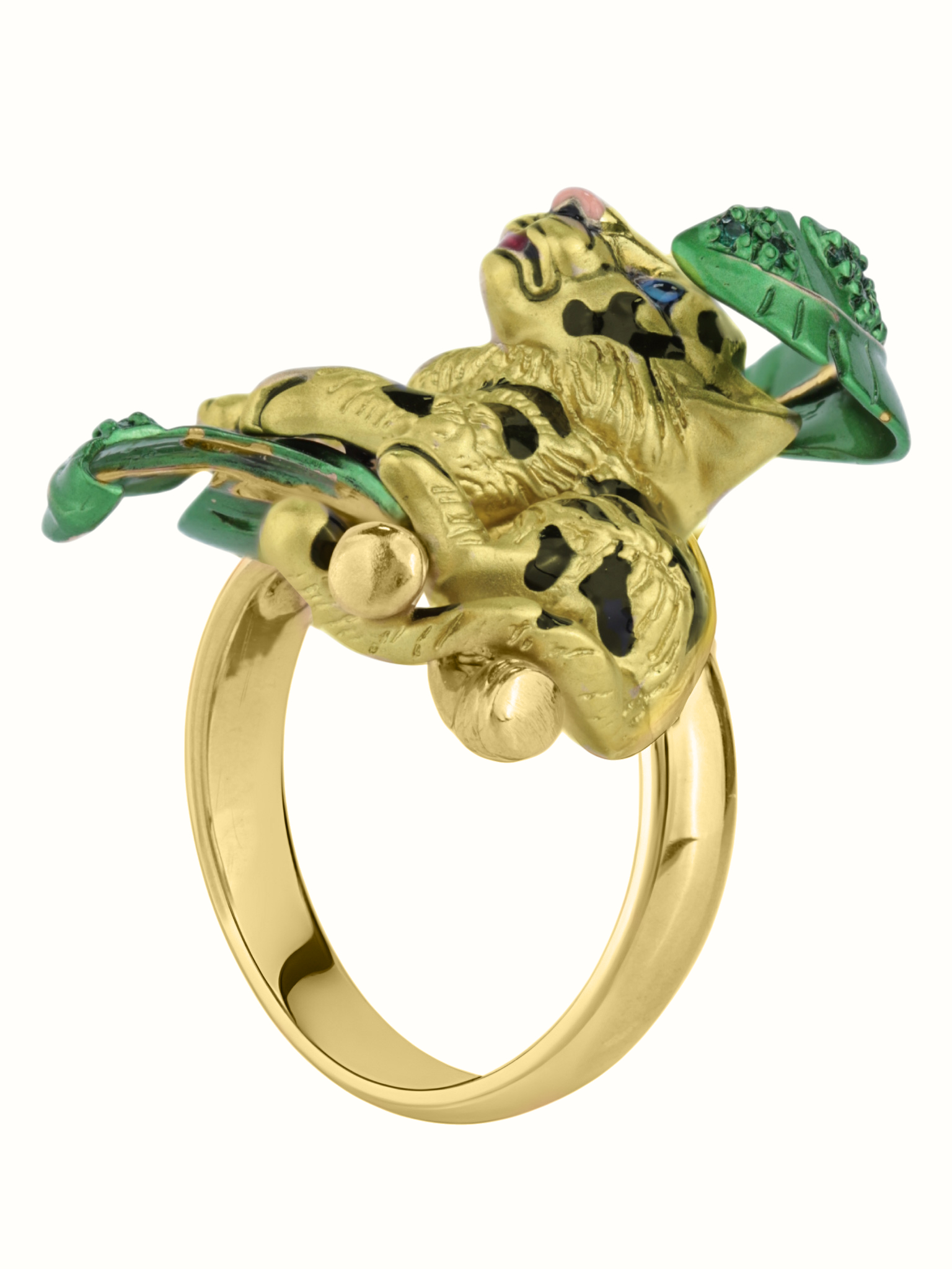 Кольцо из лимонного золота c эмалью и изумрудом