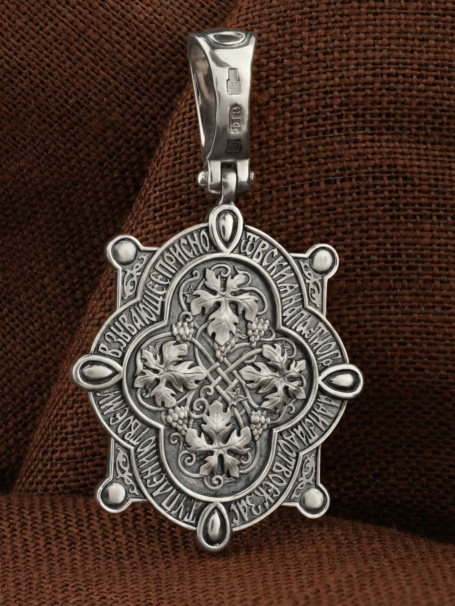 На обороте образка написана молитва Богородице в честь Ее иконы «Всецарица» (Пантанасса): «От всякия напасти огради стадо Твое, к заступлению Твоему взывающее присно».
