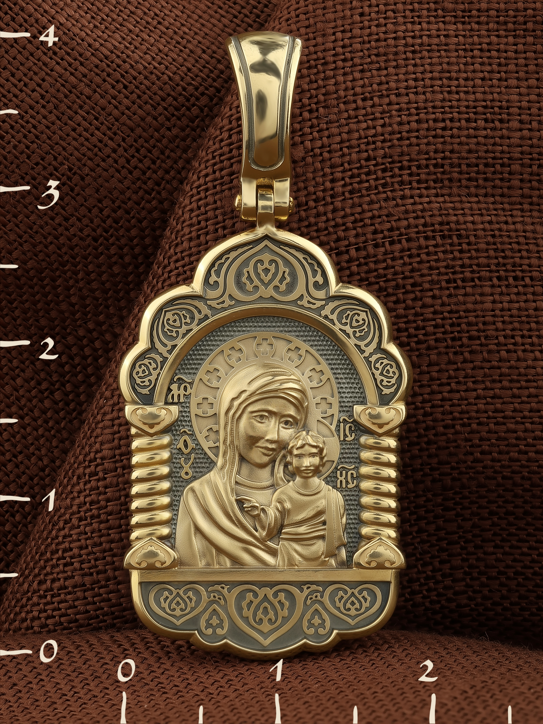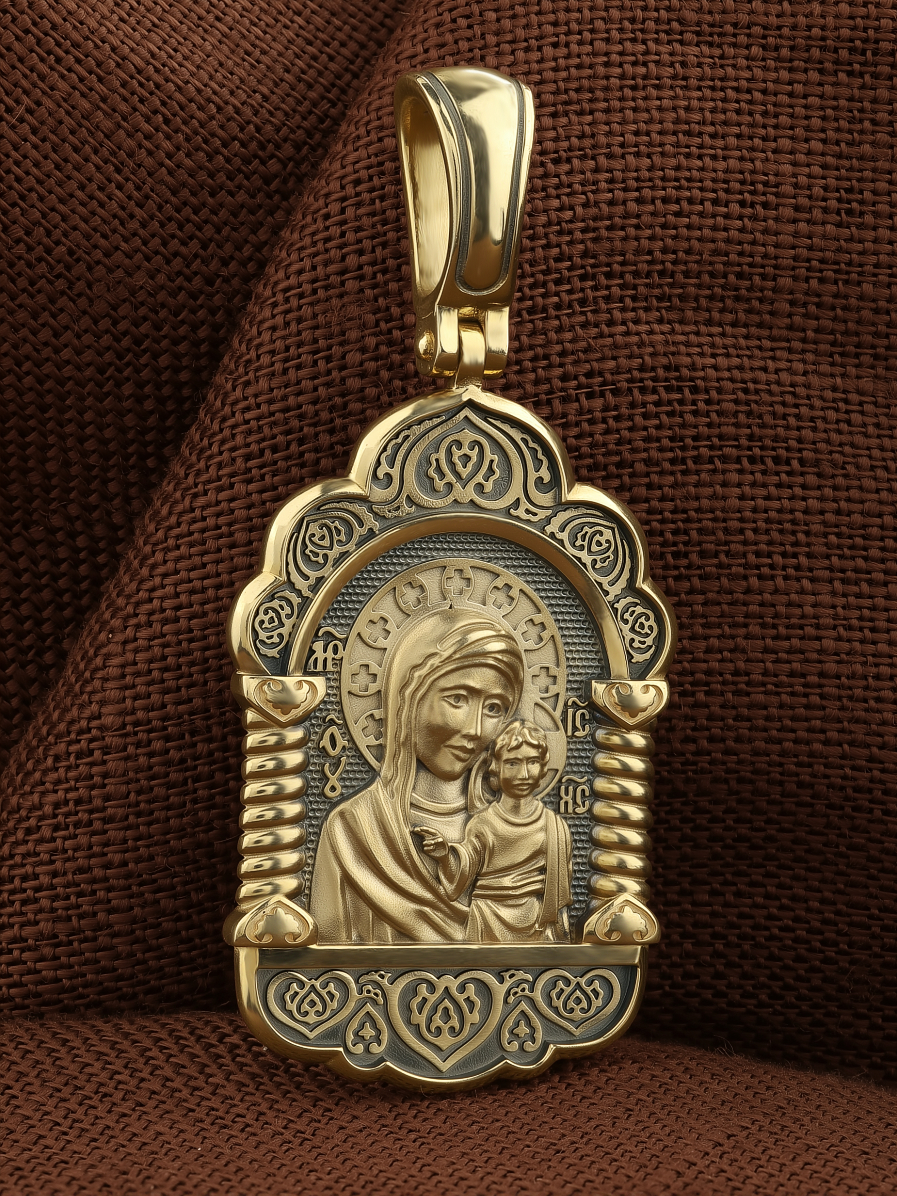 На лицевой части образка изображена Казанская икона Пресвятой Богородицы — одна из самых почитаемых в России. Икона была явлена на пожарище в Казани в 1579 году. В 1904 году святыня была похищена и уничтожена, но чудотворную силу иконы Богородица явила во многих ее списках. Молитва перед Казанской иконой Божьей Матери помогает во всех сложных случаях жизни, во всех печалях, невзгодах, скорбях.