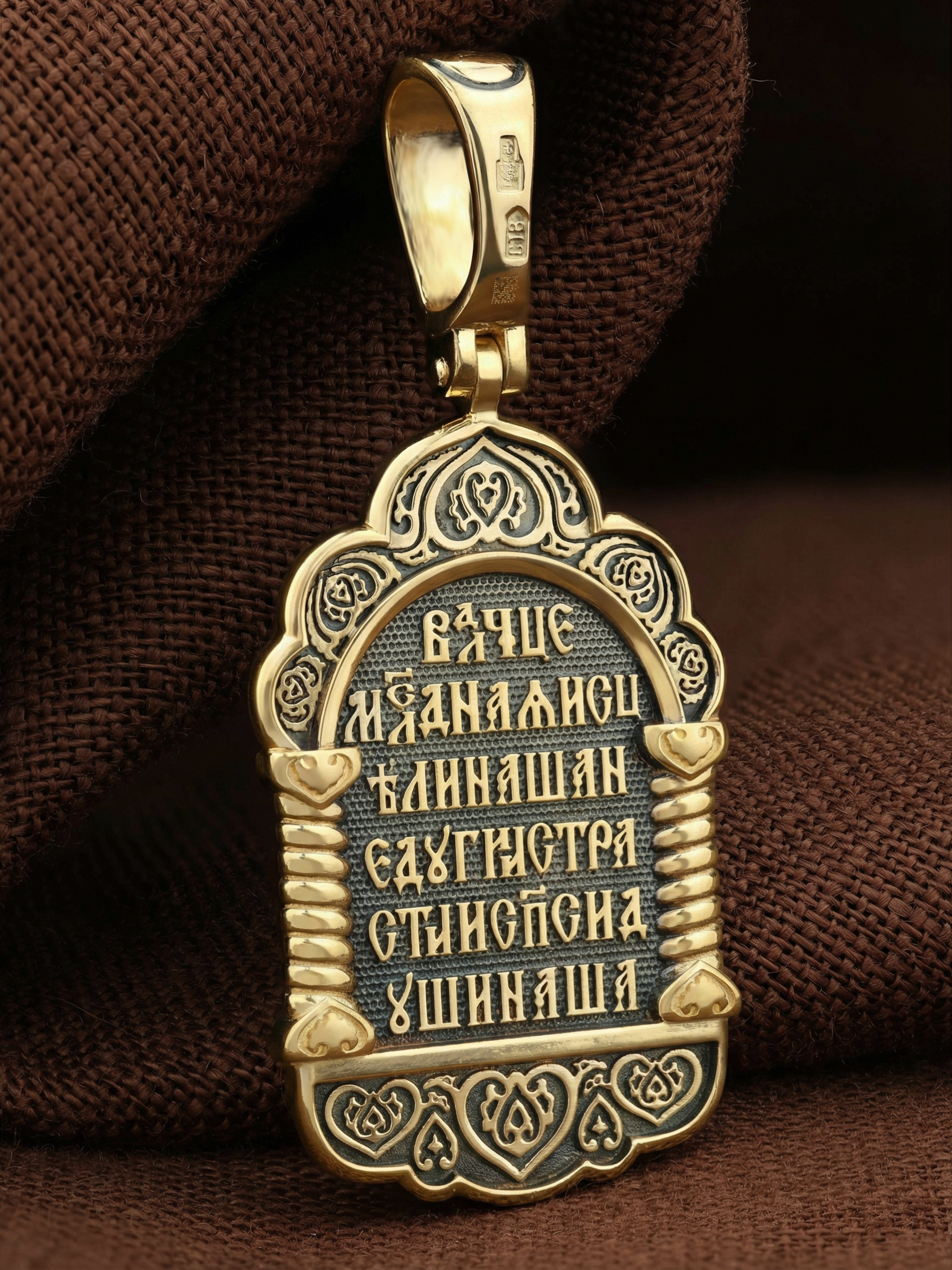 На лицевой части образка изображена икона Божией Матери «Неупиваемая чаша». Икона славится помощью в исцелении зависимостей, помогает людям обрести свободу от греховных страстей.