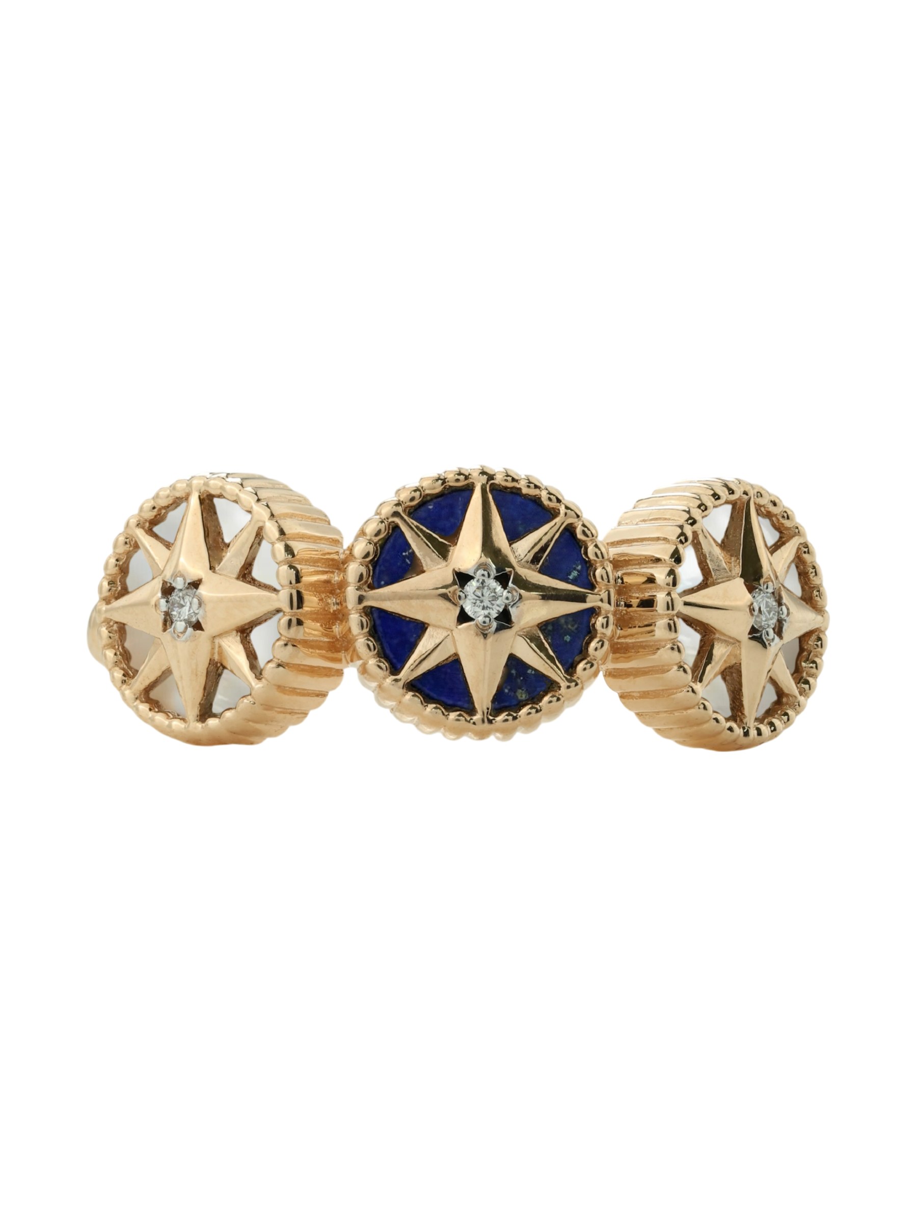 Кольцо из золота c бриллиантами, лазуритом и перламутром