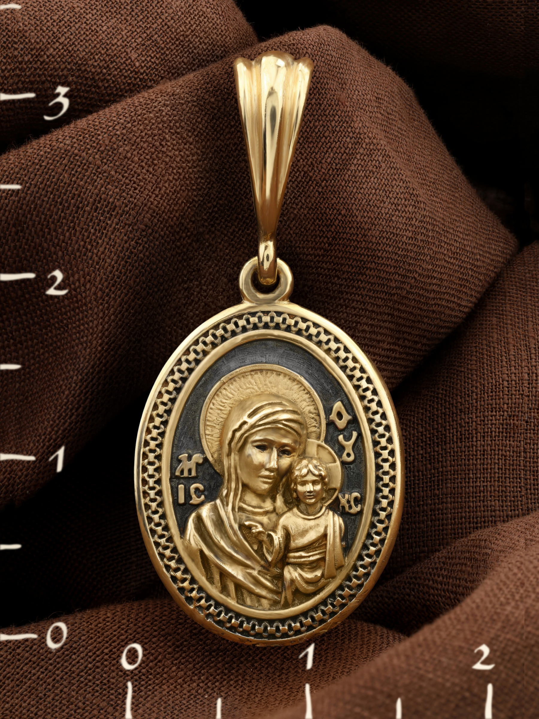 На лицевой части образка изображена Казанская икона Пресвятой Богородицы — одна из самых почитаемых в России. Икона была явлена на пожарище в Казани в 1579 году. В 1904 году святыня была похищена и уничтожена, но чудотворную силу иконы Богородица явила во многих ее списках. Молитва перед Казанской иконой Божьей Матери помогает во всех сложных случаях жизни, во всех печалях, невзгодах, скорбях.
