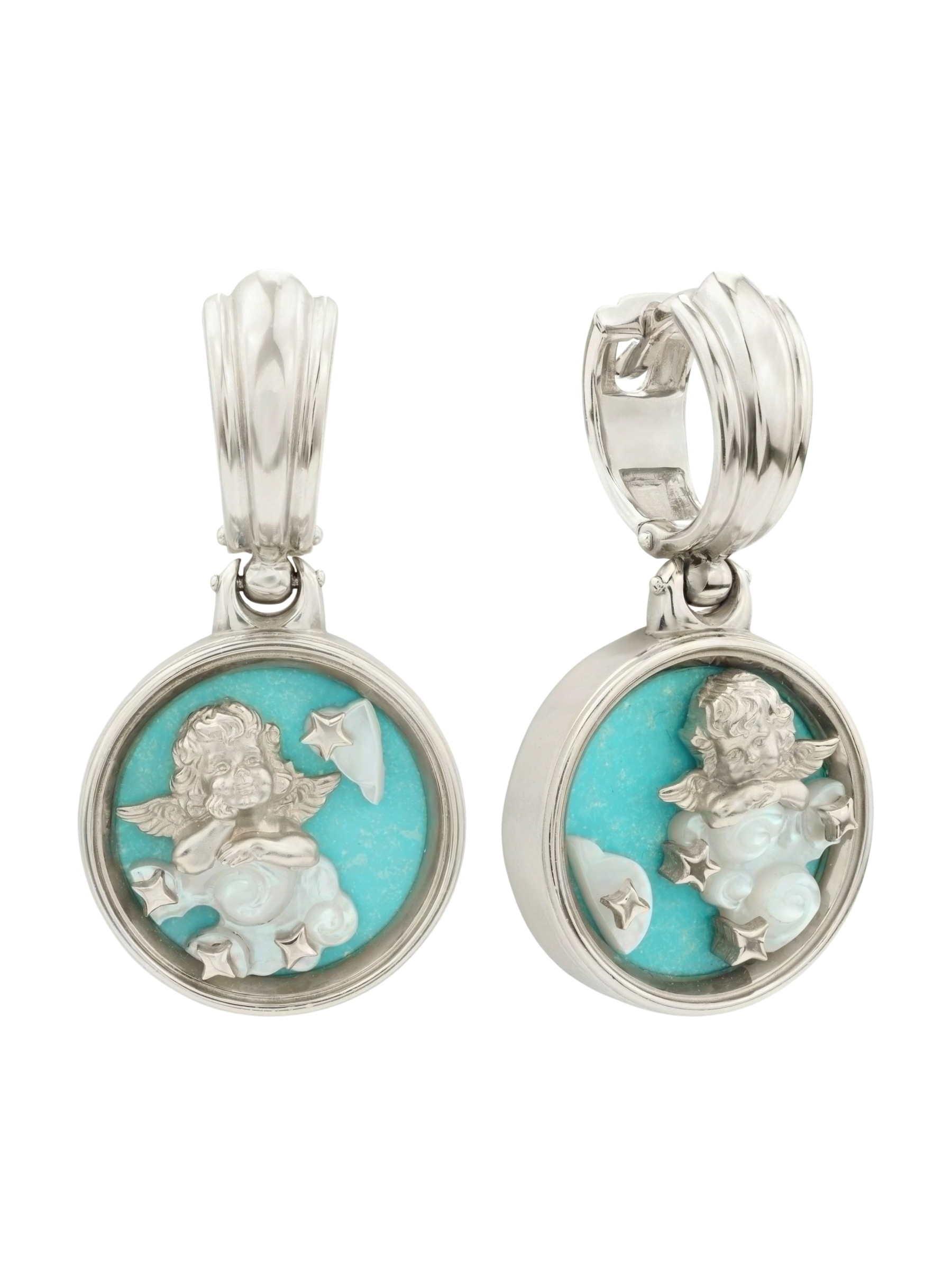 Серьги из белого золота c бирюзой и перламутром