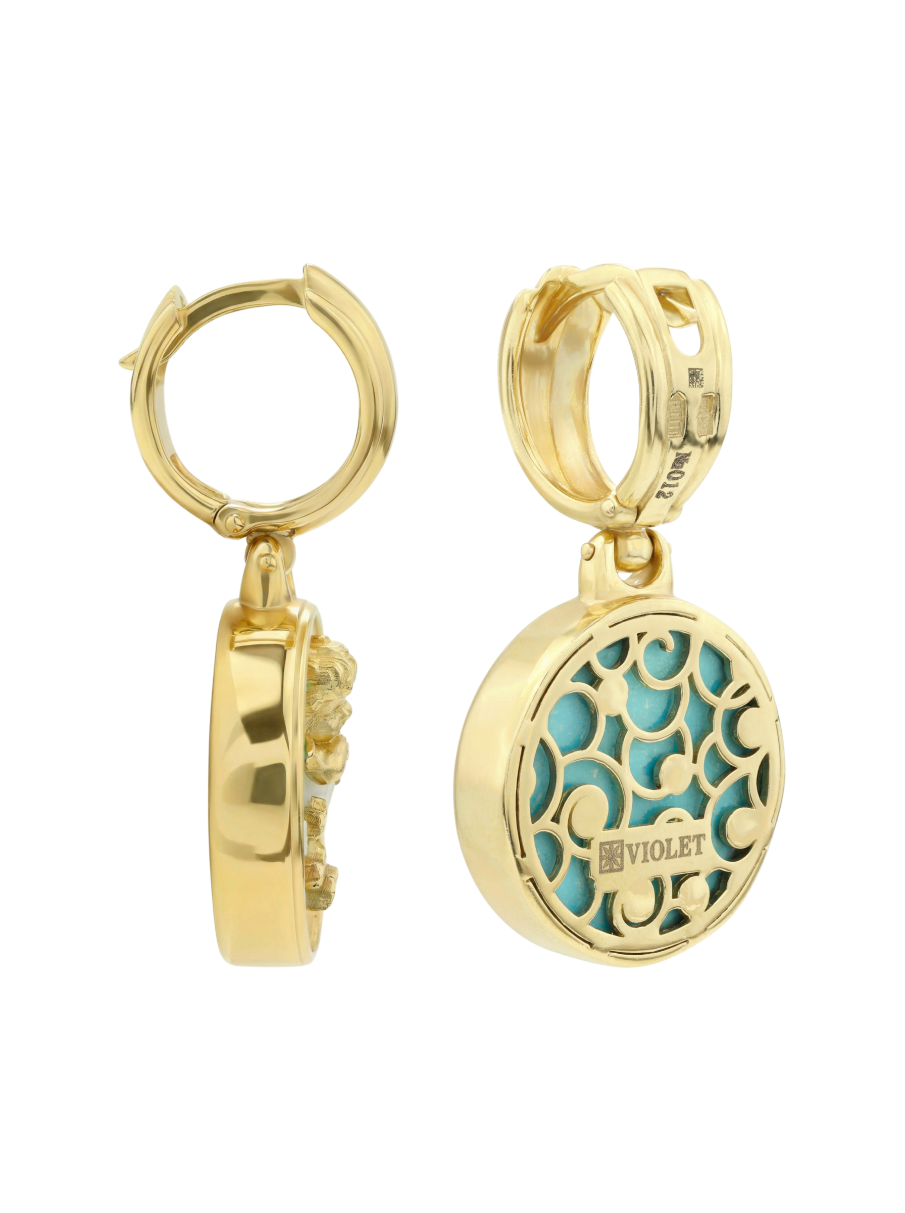 Серьги из лимонного золота c бирюзой и перламутром