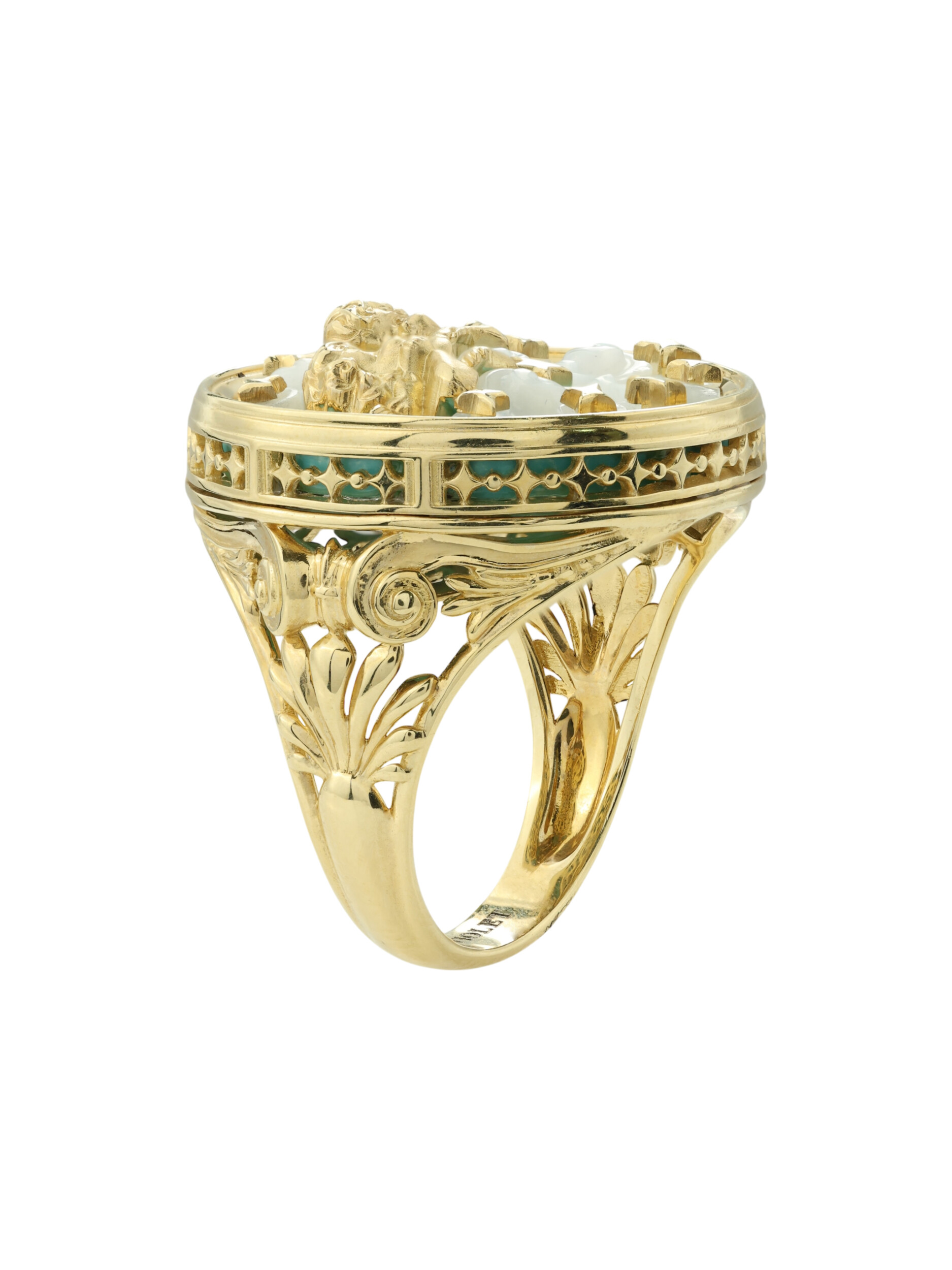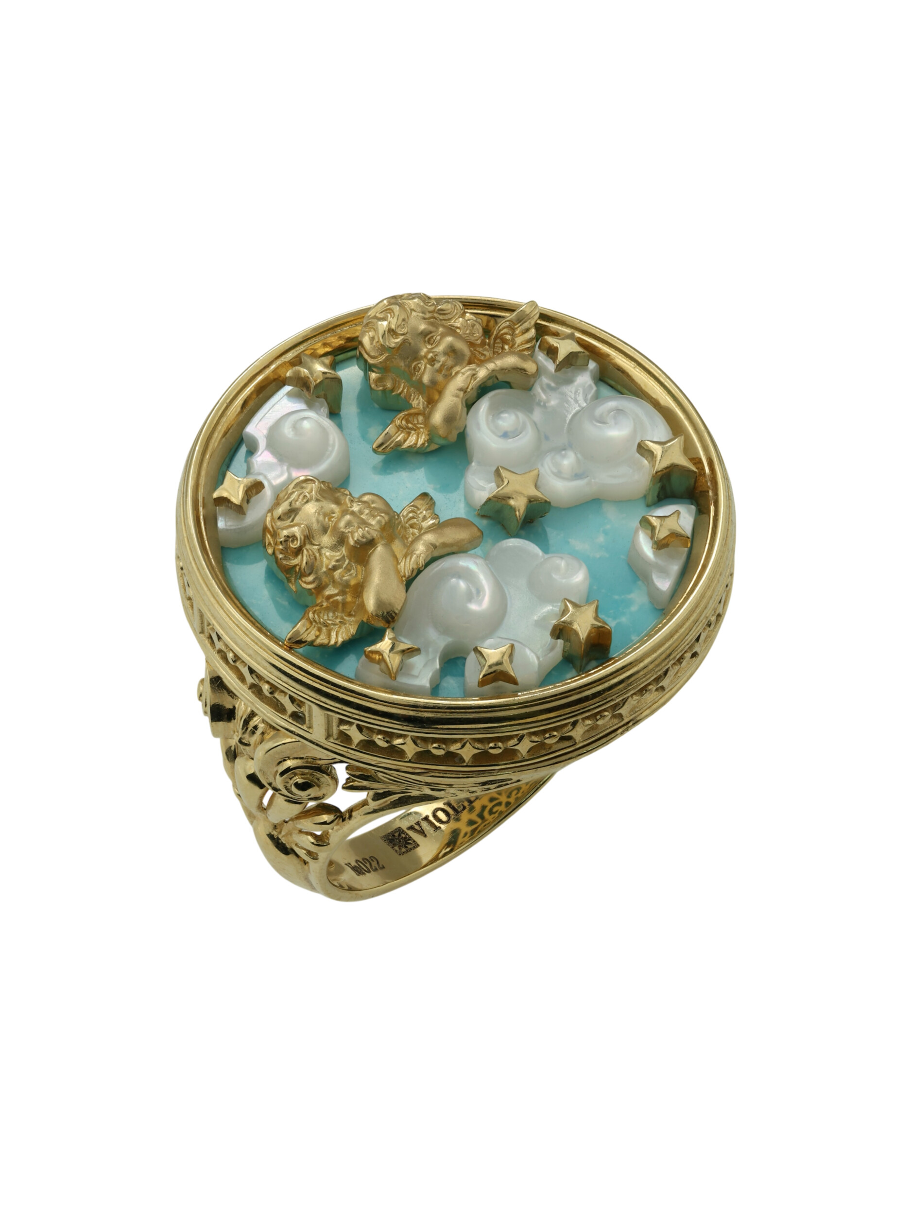 Кольцо из лимонного золота c бирюзой и перламутром