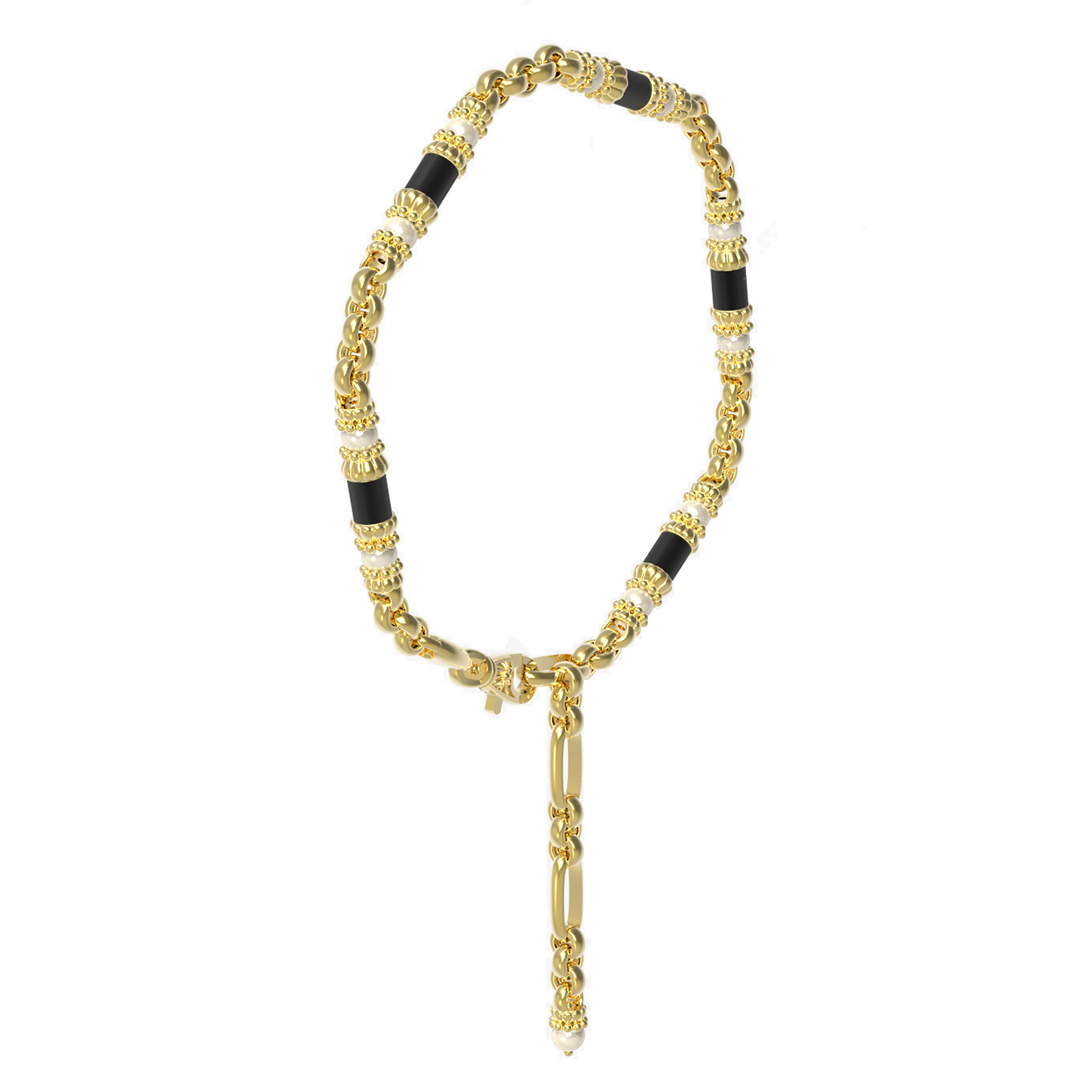 Цепь из лимонного золота c жемчугом и ониксом