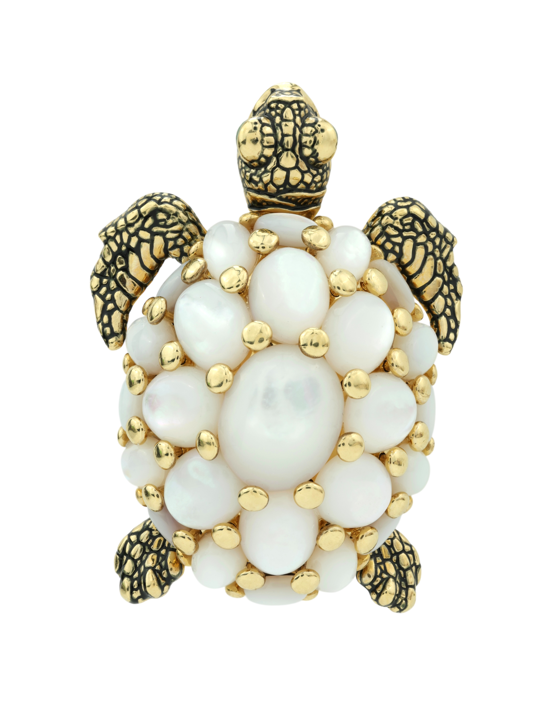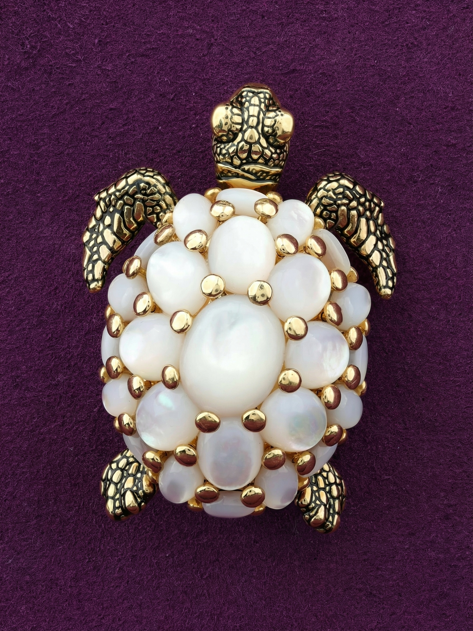 Брошь из лимонного золота c эмалью и перламутром
