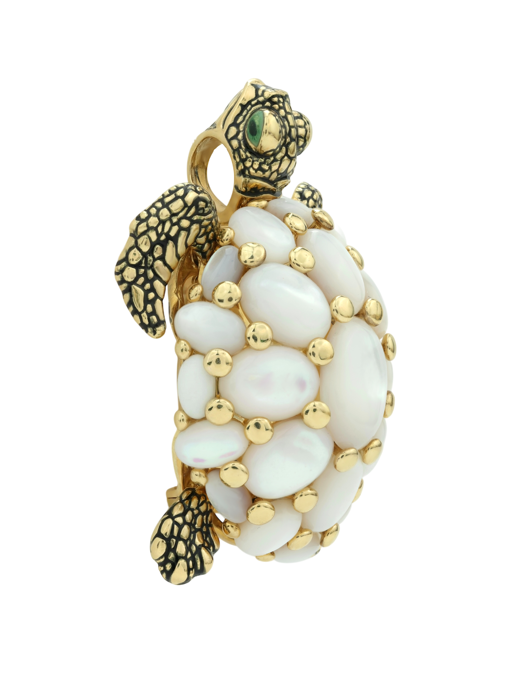 Брошь из лимонного золота c эмалью и перламутром