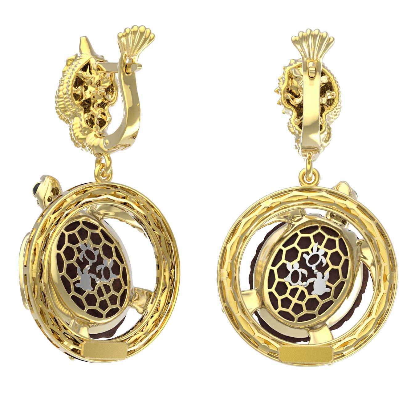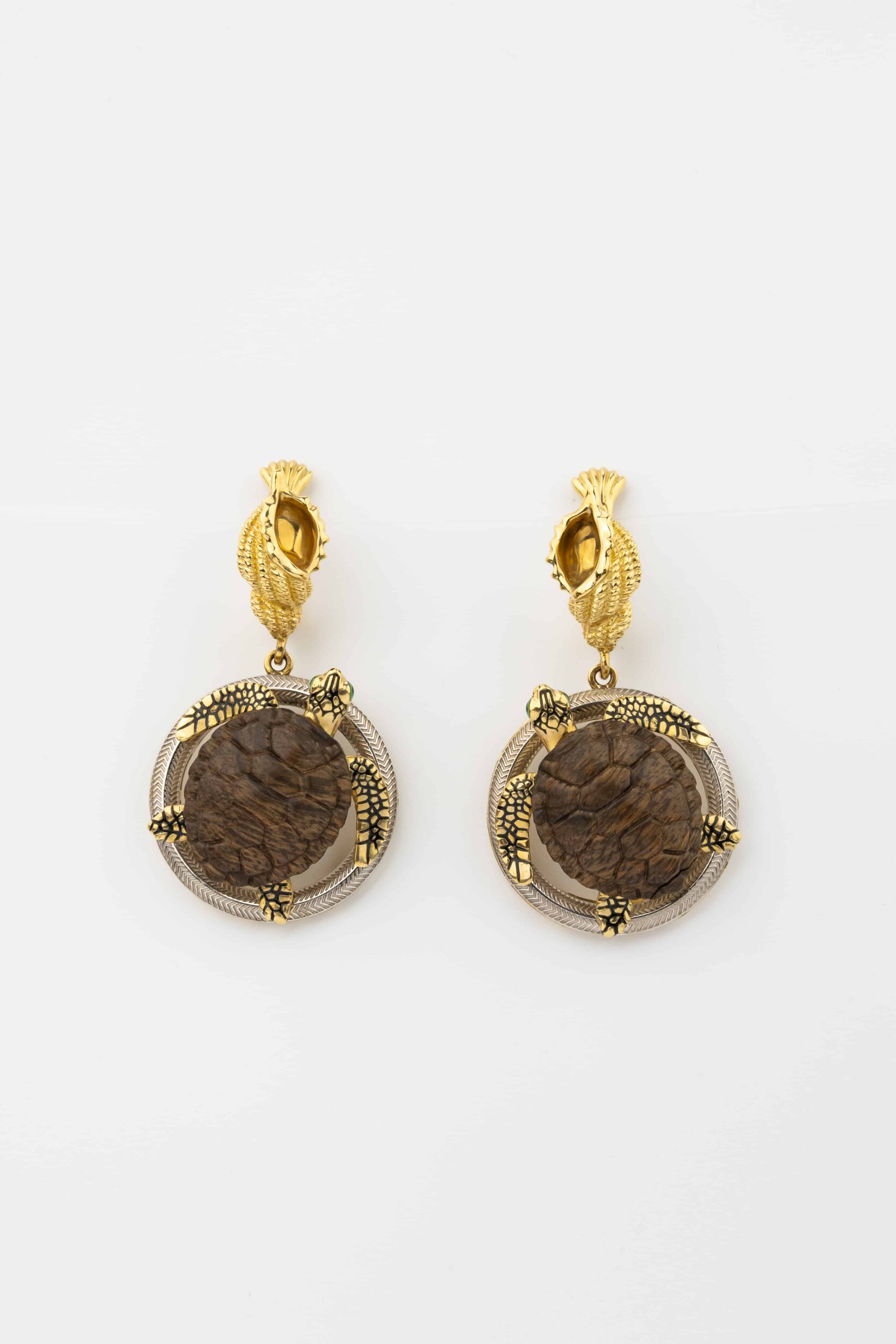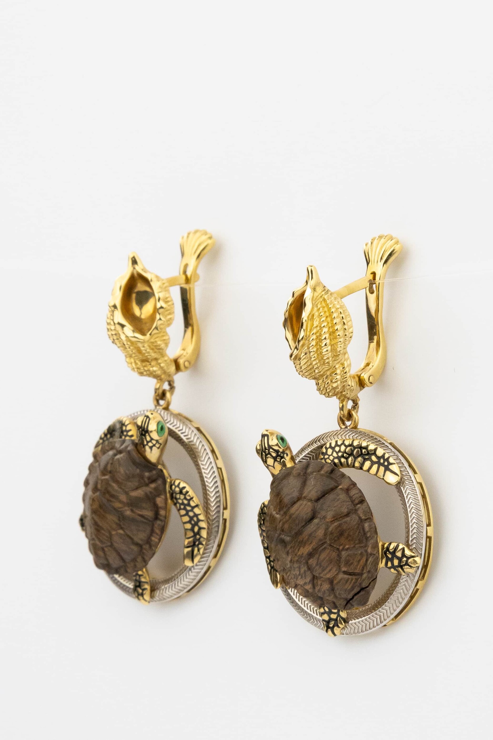 Серьги из лимонного золота c эмалью и железным деревом