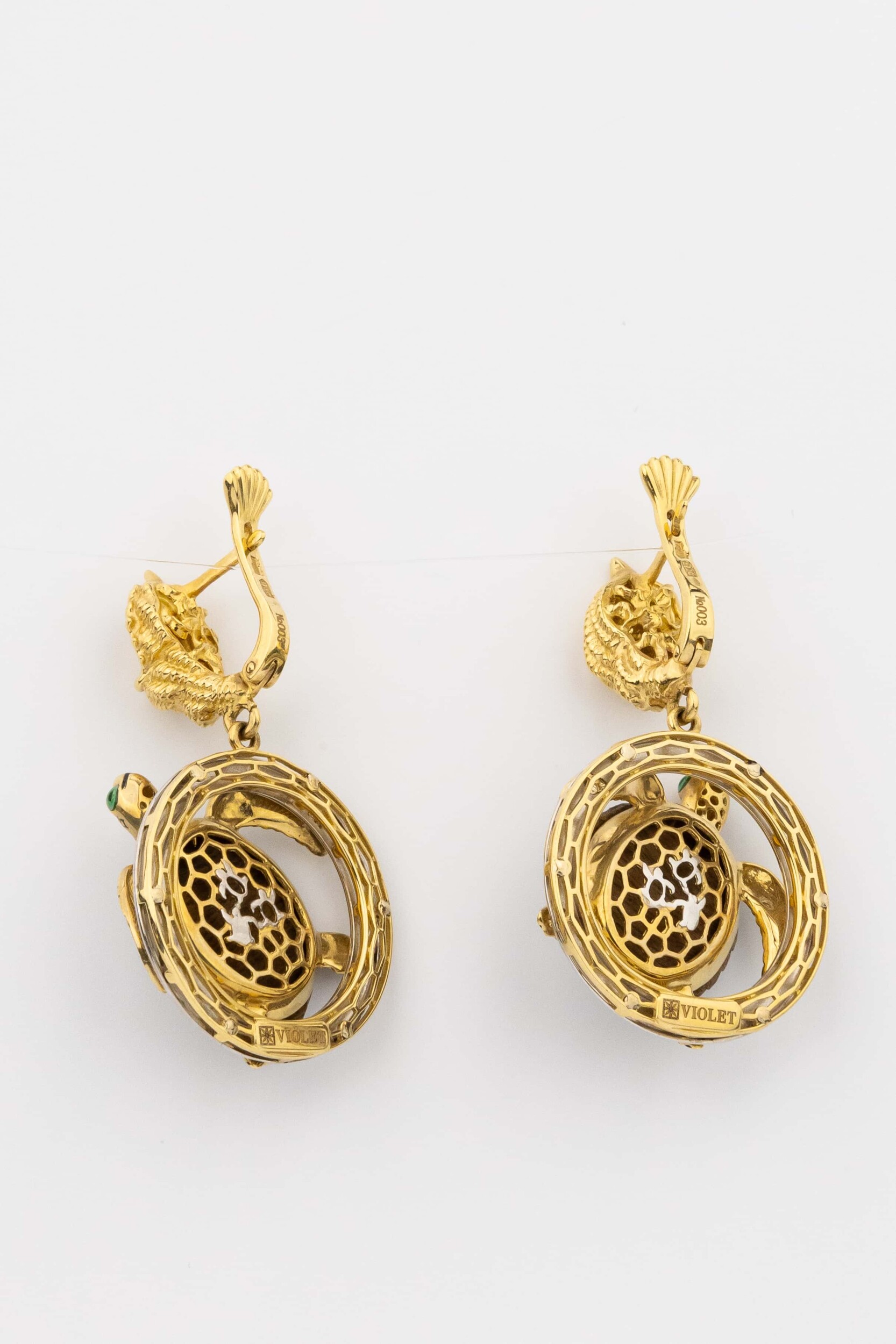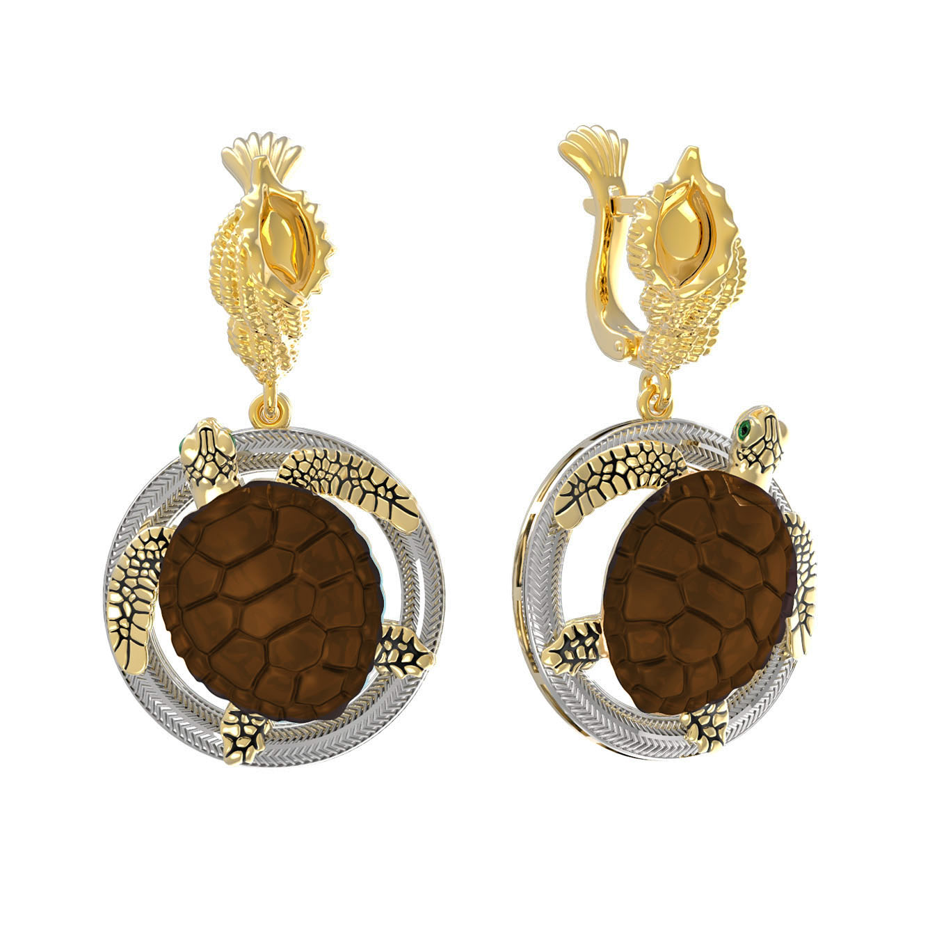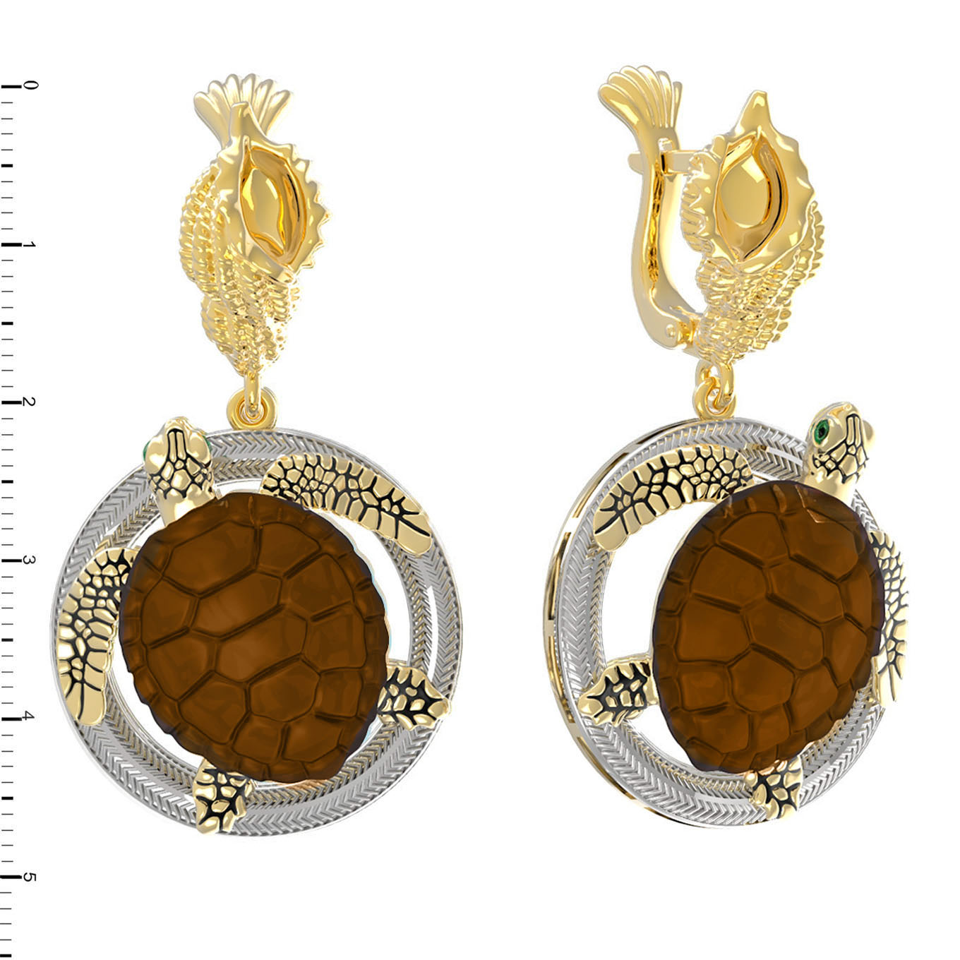 Серьги из лимонного золота c эмалью и железным деревом