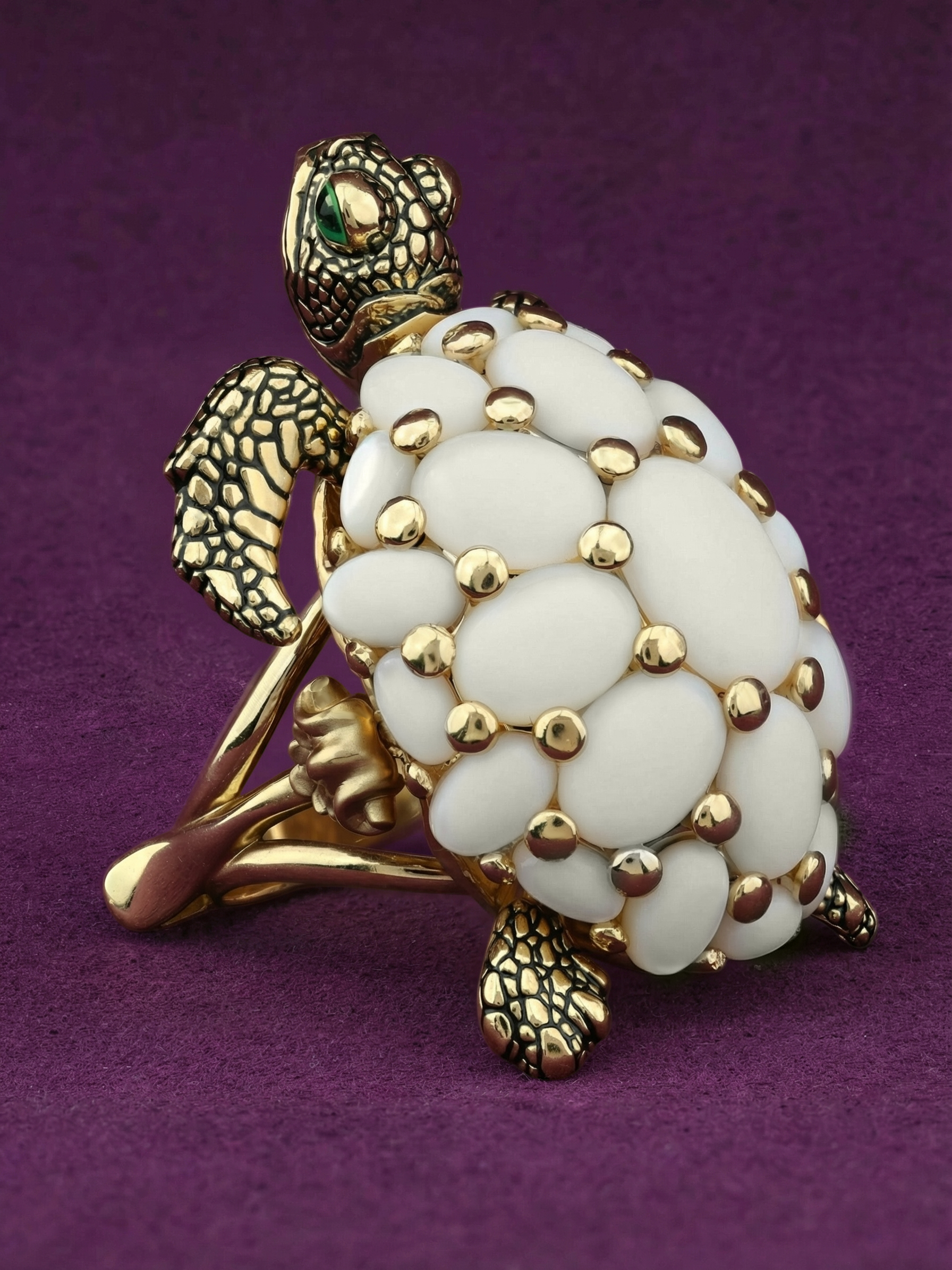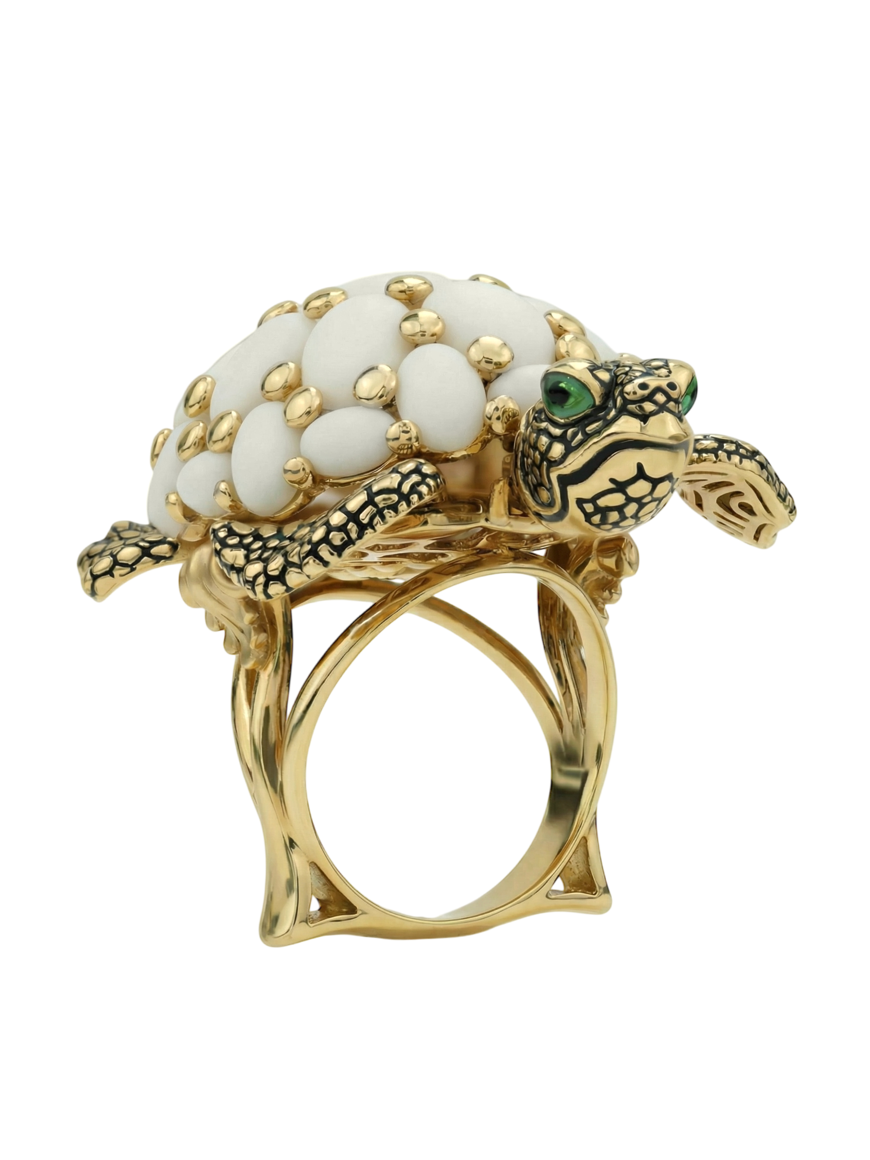 Кольцо из лимонного золота c эмалью и бивнем мамонта
