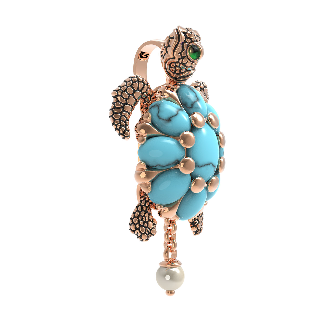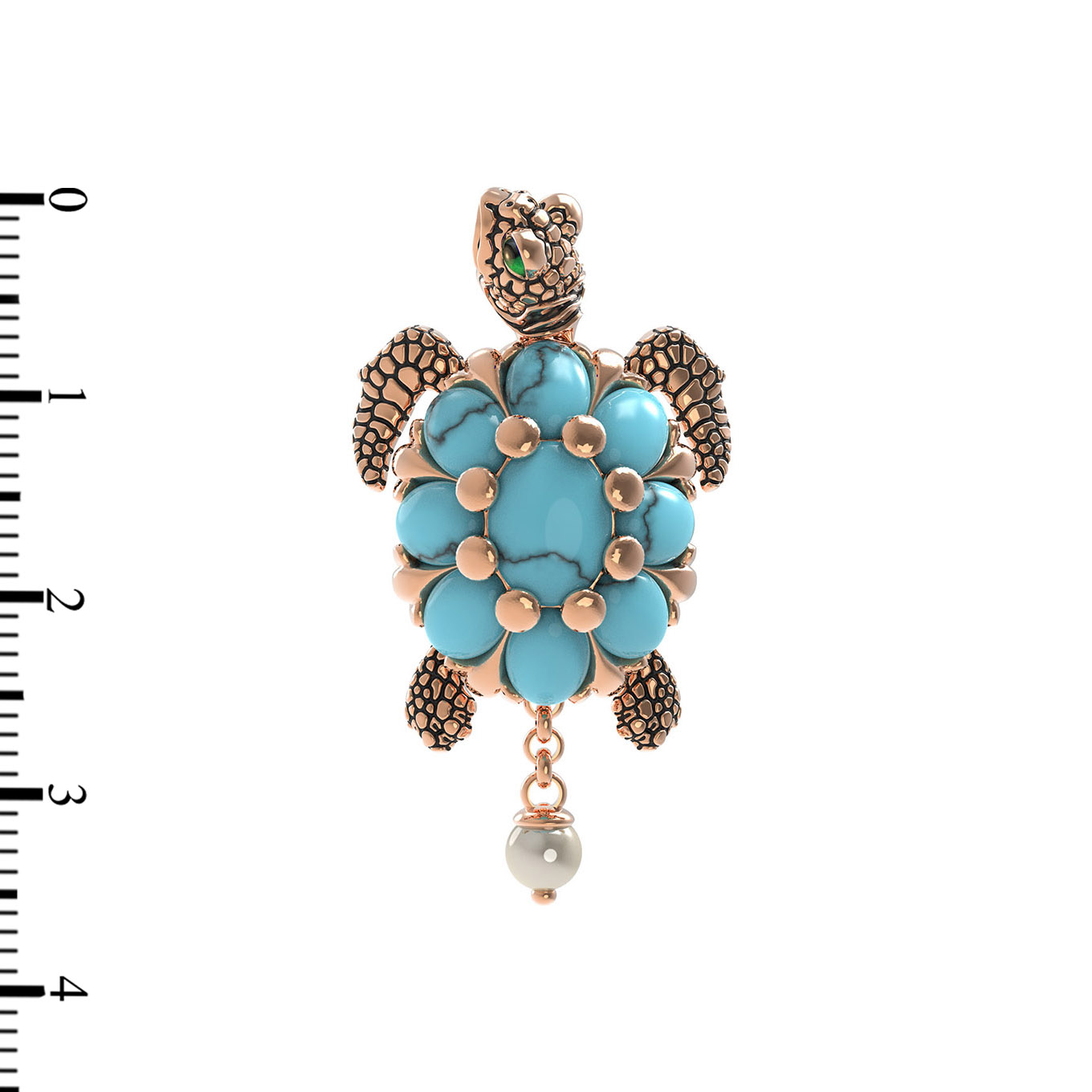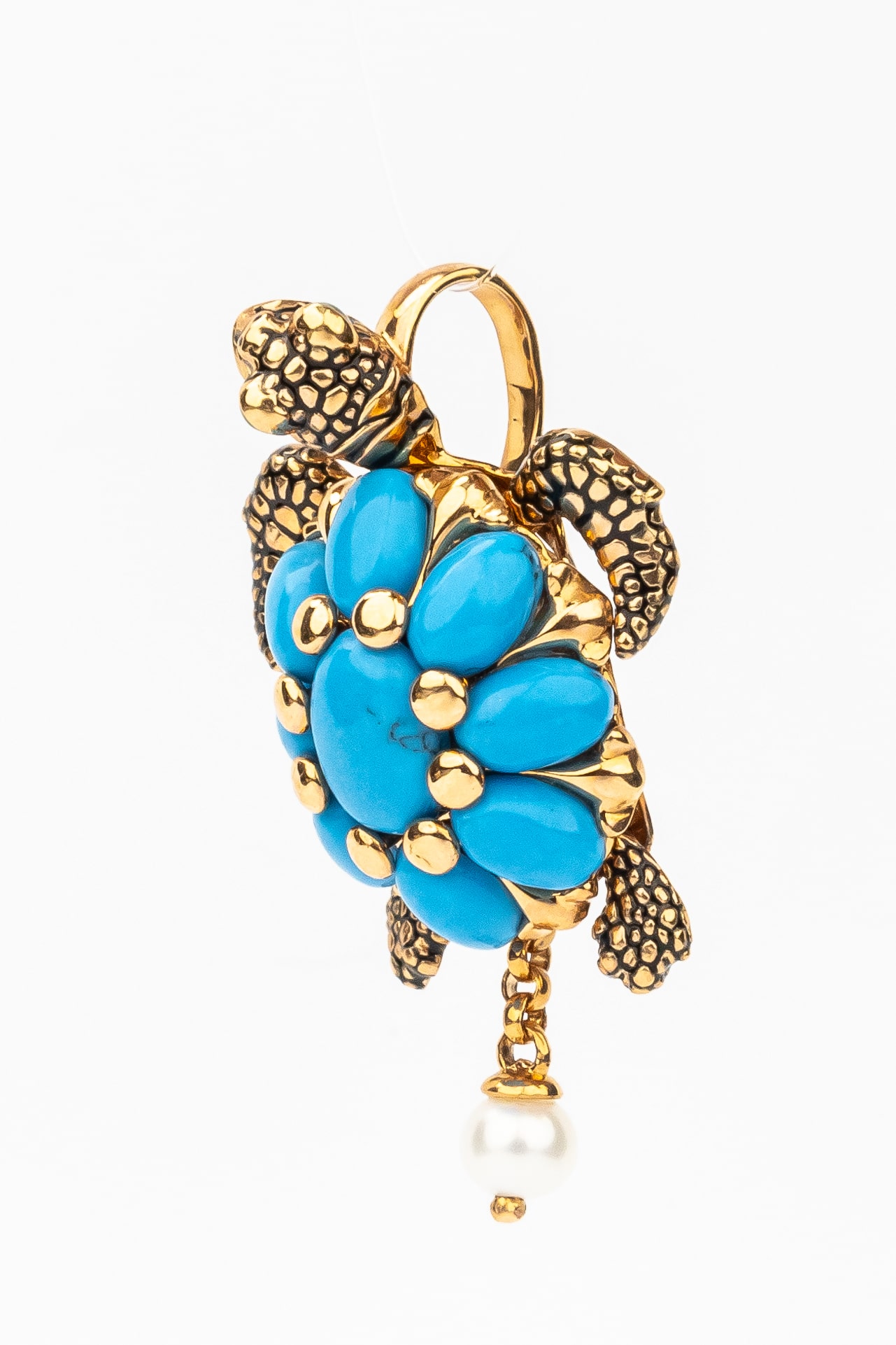 Подвеска из золота c эмалью, жемчугом и бирюзой