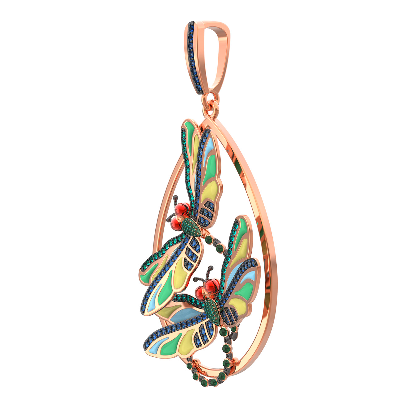 Подвеска из золота c сапфиром, изумрудом и эмалью